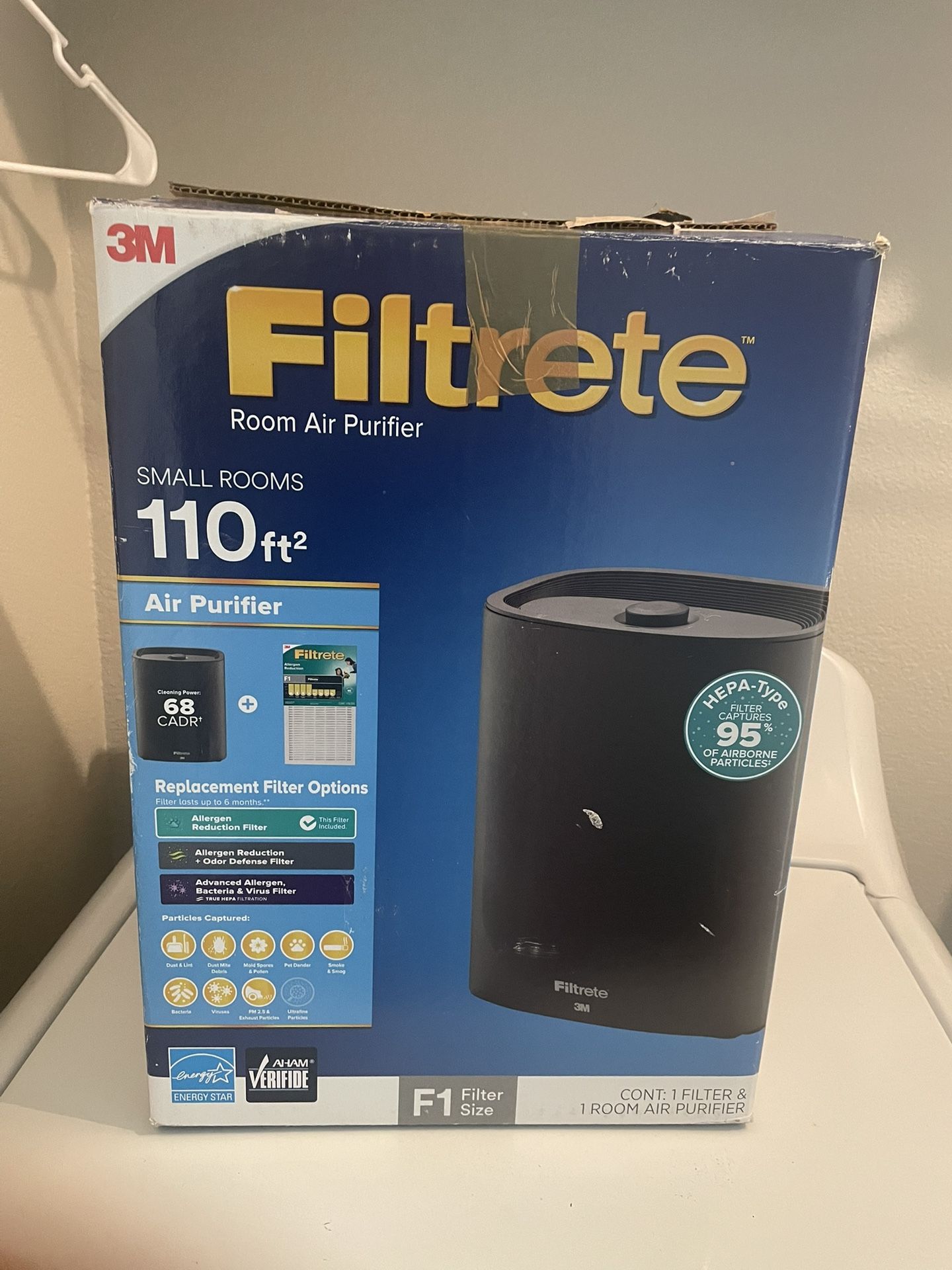with a HEPA-type filter. It is designed for use in medium-sized rooms. The HEPA filter captures 99.97% of airborne particles, including mold spores, pollen, and pet dander. Some models are smart purifiers compatible with the Filtrete Smart App, Amazon Alexa, and Google Assistant. Features may include electronic touch controls, a filter life indicator, and multiple fan speeds.