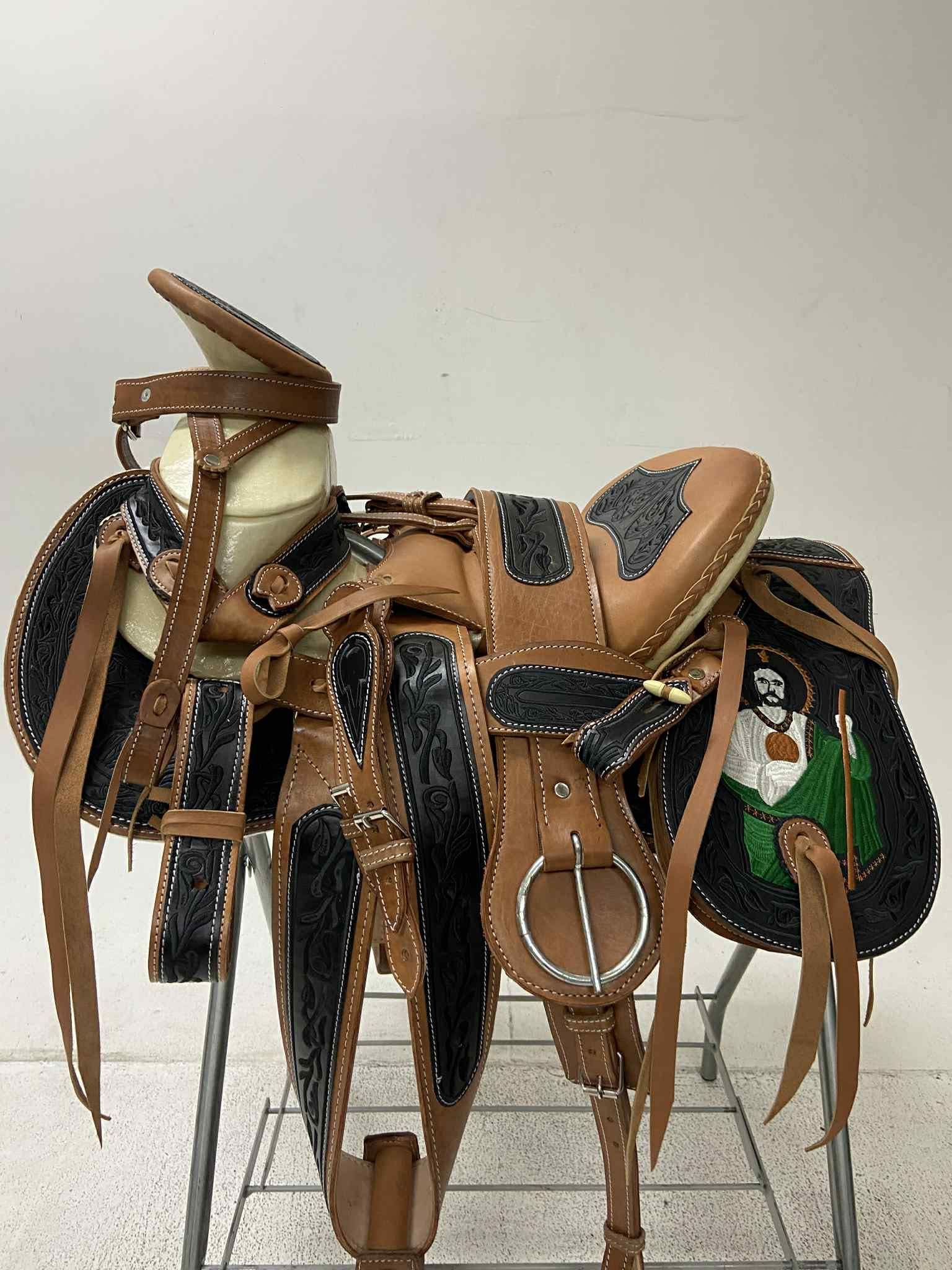 Hecha en México , 100% piel , bordada charra con preciosos diseños exclusivos, con asiento forrado para más comodidad, el precio ya incluye la cabezada, las correas para las espuelas, el cincho y la pechera, lista para recoger o entregamos a domicilio, envía mensaje para más información