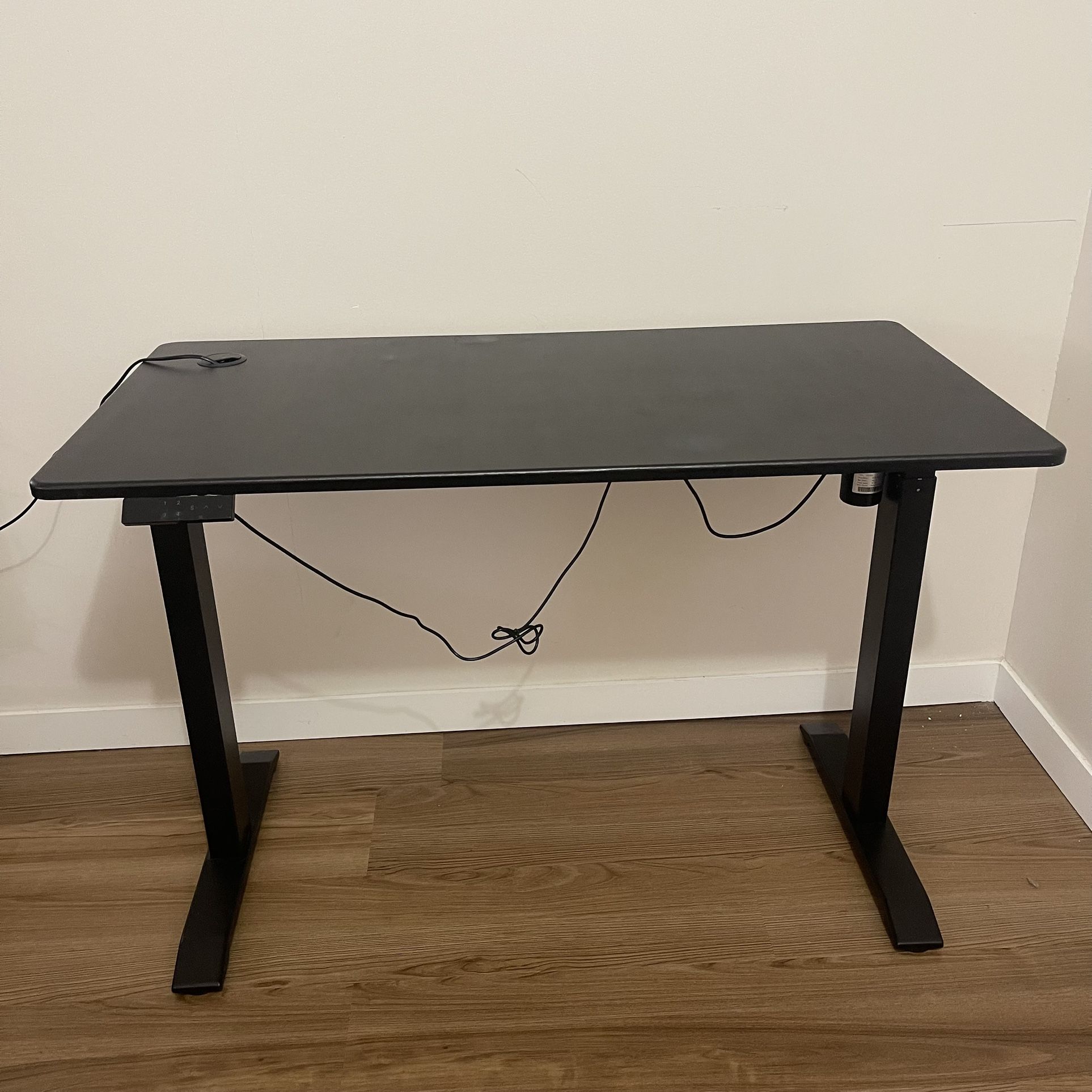 I am selling an electric standing desk. Adjusts up to 48 inches in height. Dimensions: 46.5" L x 23.5" W Some cosmetic damage and spots on the desk, but everything functions properly. Asking $150 OBO. Message me for more information!