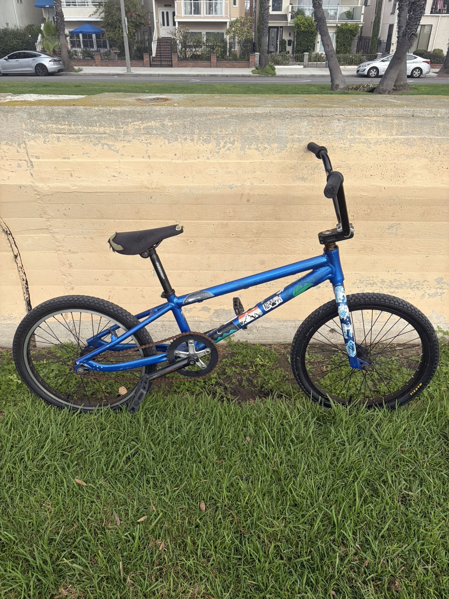 BMX GT racing bike. Local bike shop owner says it’s probably a Kachinsky. Original paint. New pegs. New grips. New brakes (since pictures taken). Kinda rusty chain. Seat material wearing. Works perfect. For sale or trade for a 27-29" wheelie bike.