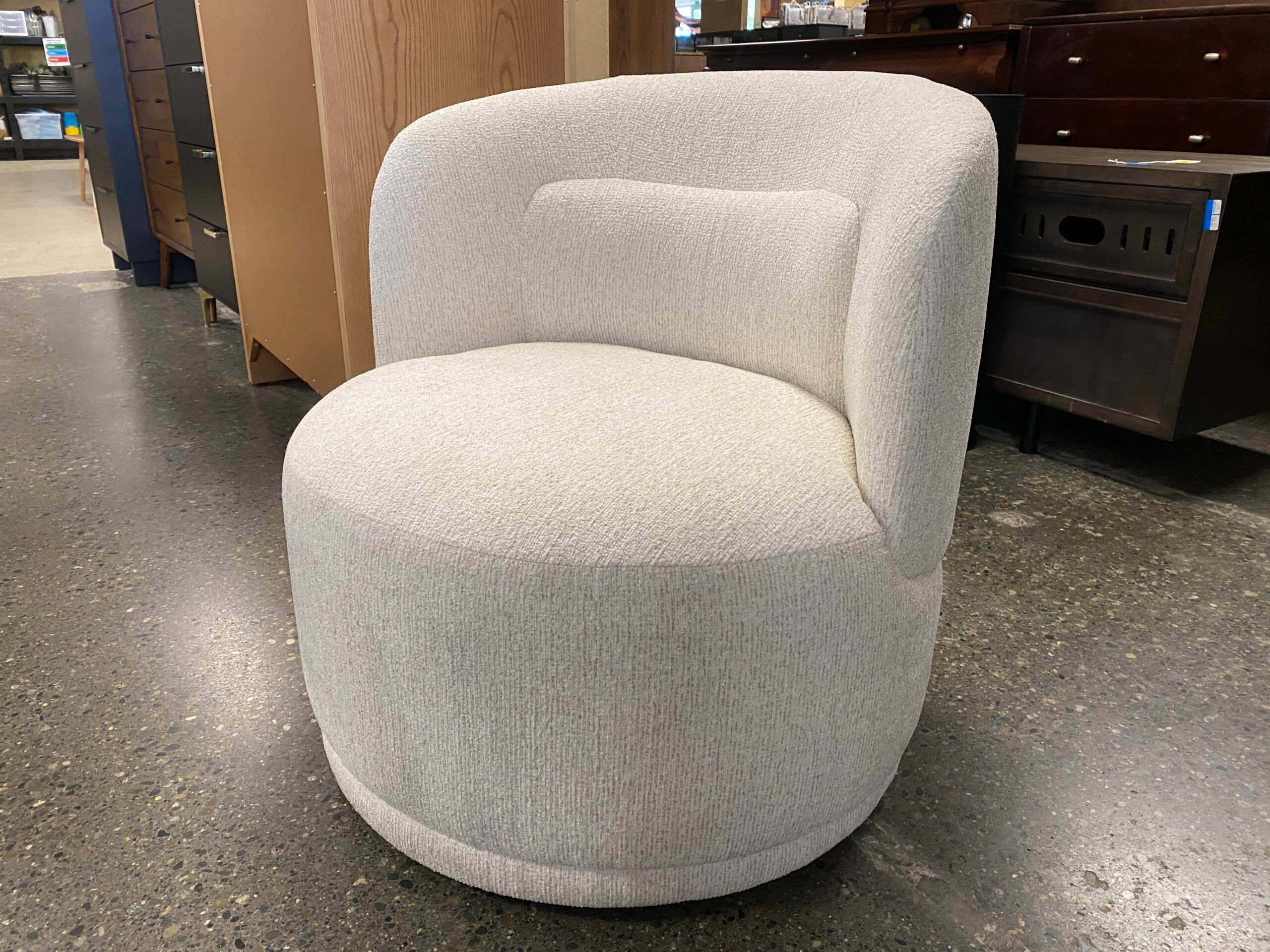 Massen Textured Beige Performance Fabric Barrel Swivel Chair