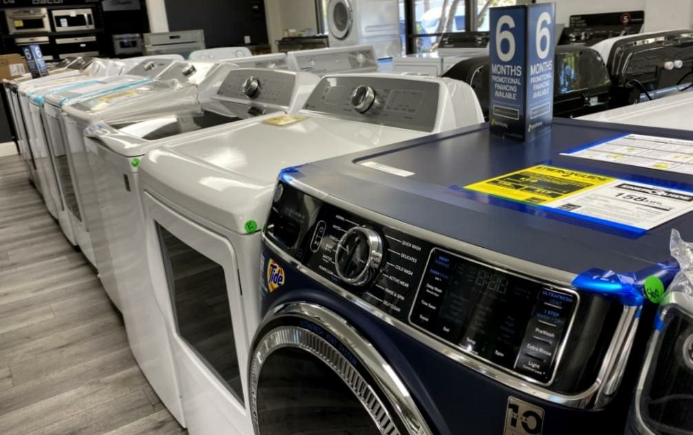 for Actual Price Brand New Washer with Dishwasher Range Microwave Up to 50% Off MSRP Refrigerator Washer Dryer Largest Open Box Appliance Retailer in South OC Caesars Appliance Sales Can Deliver All OC & Some IE 90 Days as Free Warrnty