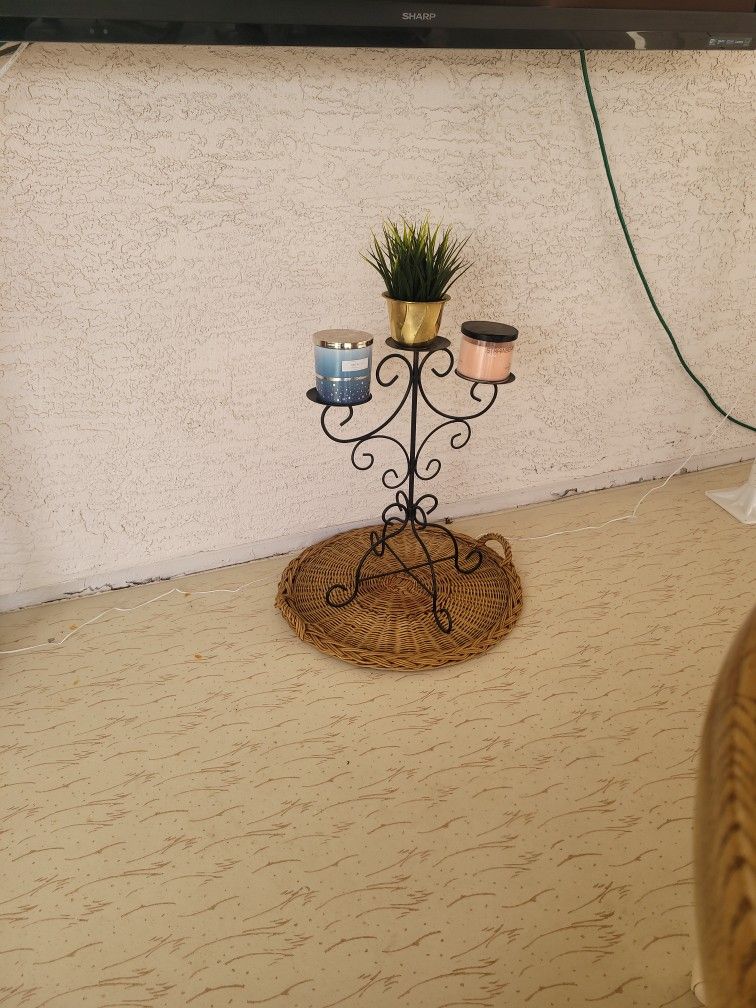 Can be a candle holder as well,black metal,22 inches tall and 16 inches wide,really cute for that little extra space you want to Decorate!!! Candles and plant not included, this is just the holder
