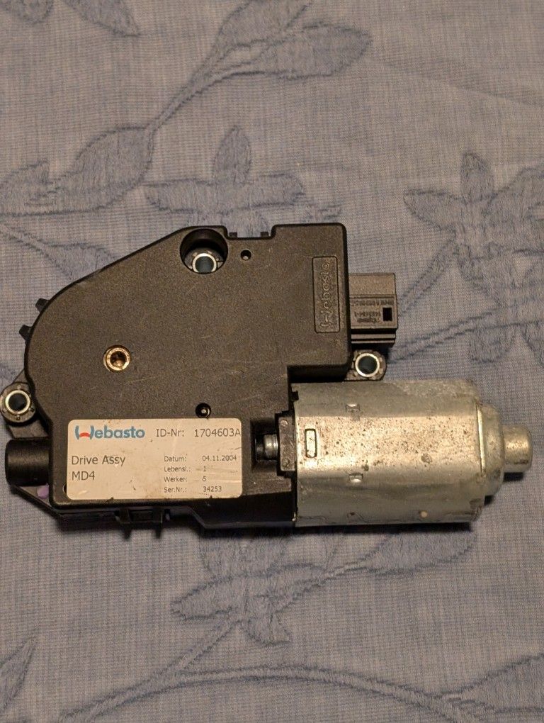 This OEM sunroof motor drive unit is designed for a BMW E63 6-Series, years 2004-2010. It is a motorized feature that allows you to control the sunroof with ease. The manufacturer part number is 1704603A. This product is made for car and truck parts and accessories, specifically for the exterior parts and accessories, and is a sunroof and parts item.