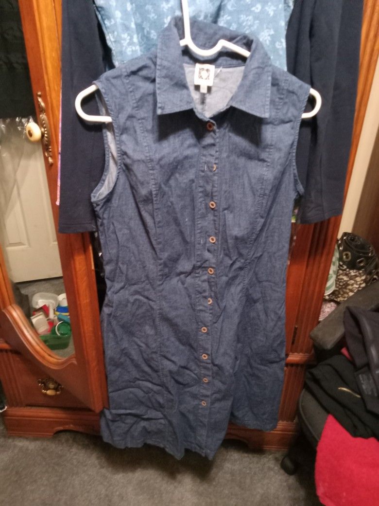 Anne Klein denim dress button down front with pockets size 10 brand new