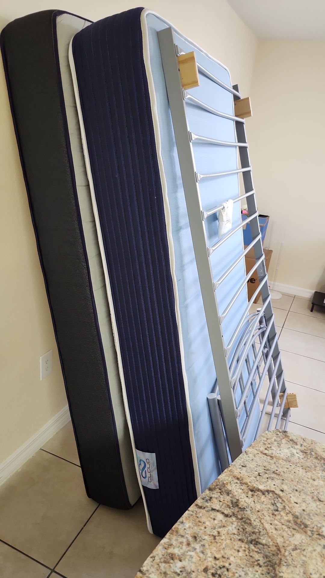 Excellent Condition. Absolutely no damage. 11 inches thick. 1 is brand Sleepys. 1 is brand Clouds. $25 each. 1 Twin bed frame available for $25. Free delivery depends on distance. Call me at 305 Three, 8 9, Seven 0 7 9.