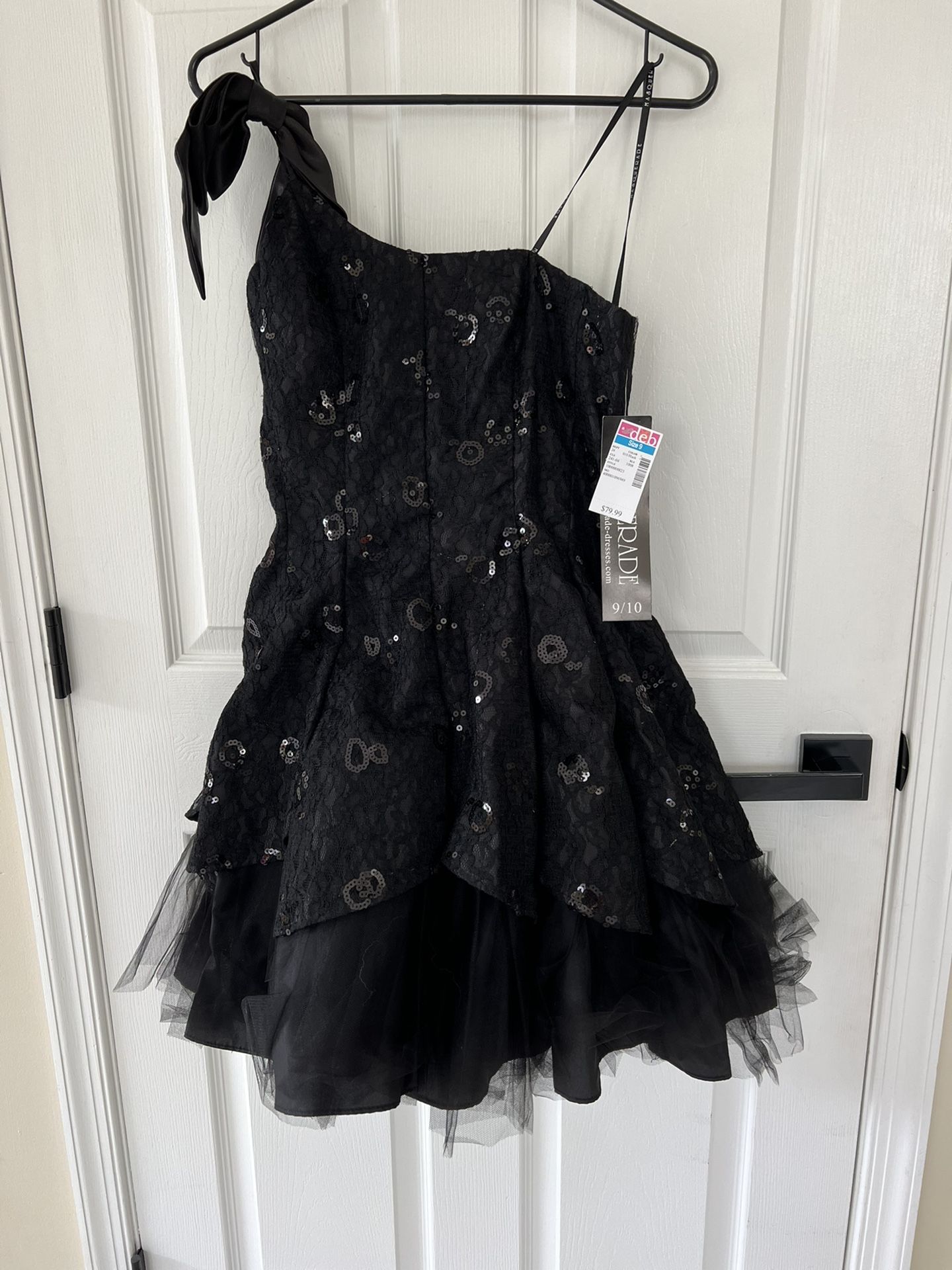 So pretty sequin off one shoulder black short fluffy dress. New with tags