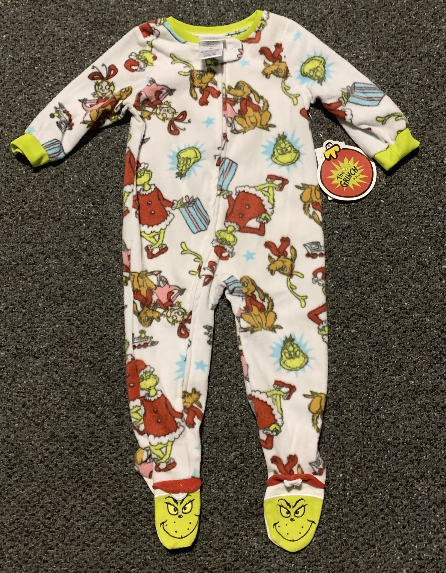 New The Grinch Cindy Lou and Max size 12 month fleece Christmas sleeper pajamas