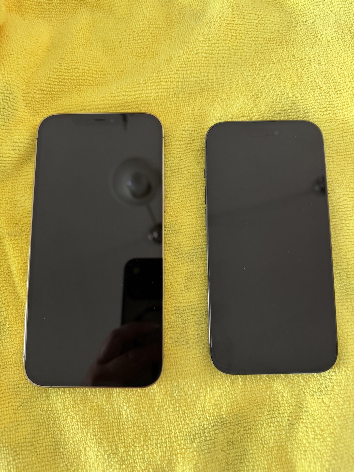 Two phones in excellent condition! No damage at all. Serious inquiries only. For sale together or separate. 12 pro ma w/256 GB 14 pro w/256 GB capacity - unlocked Each $300 or $575 for both Nothings has been replaced on phones
