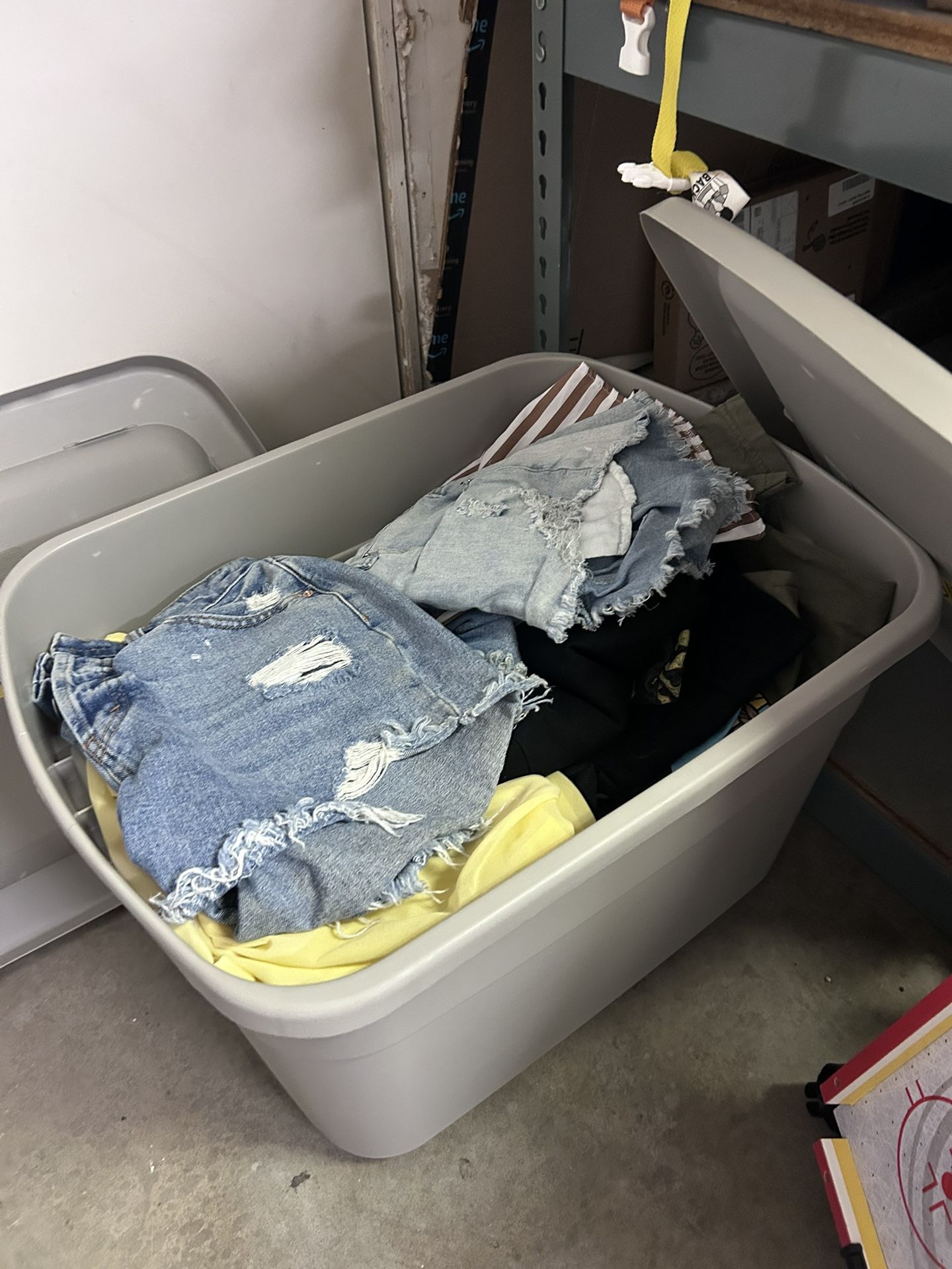 I have about 5 bins of clothing for sizes S/M. Everything is very gently used if it brand new with tags. A lot of these items are in season and I’m just wanting to purge and get rid of. If they don’t sell, I’ll be donating items. You can come and go through the bins and grab whatever you like. Everything $5 and below. Shorts, dresses, blouses, pants, shirts, crop tops, skirts, jackets, everything!