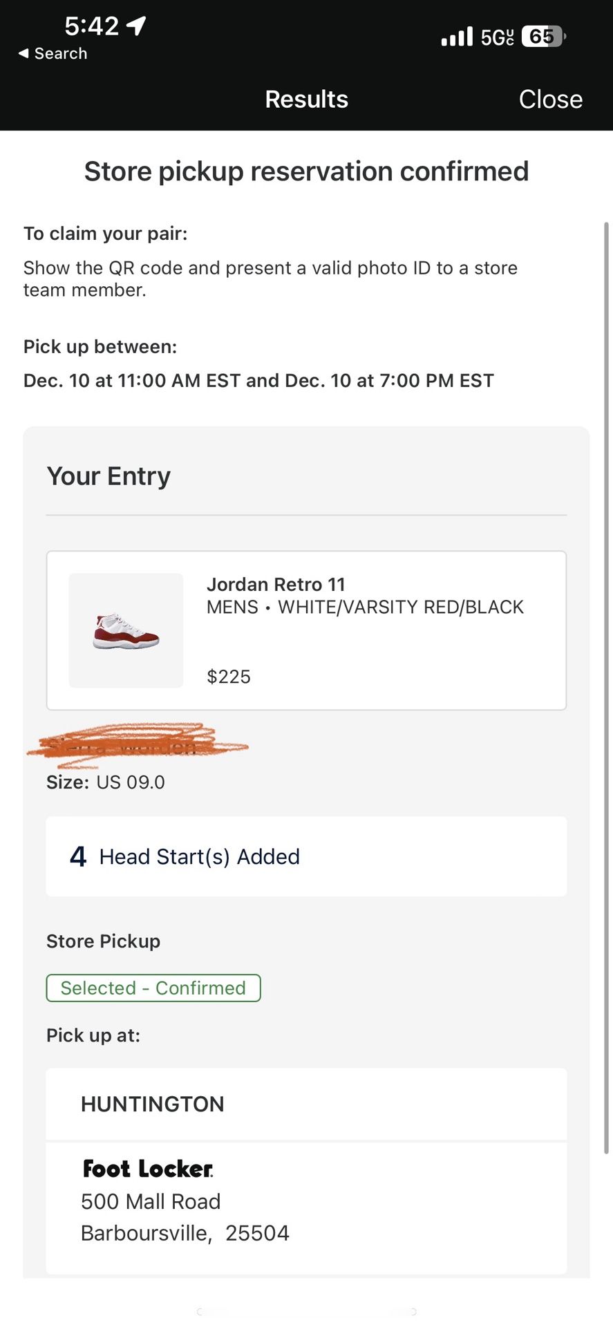 Jordan 11 Cherry With Receipt Sizes are 6x2, 6.5,9,10,11x3,11.5,12