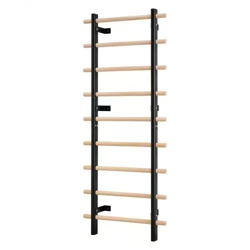 591#Swedish Ladder Wall Gym, 9-Level Swedish Ladder Suspension Trainer, 330LBS Loading Solid Wood + Carbon Steel Gymnastics Stall Bars for Adult, Compatible with 3.15" x 3.15" Power Rack Accessories