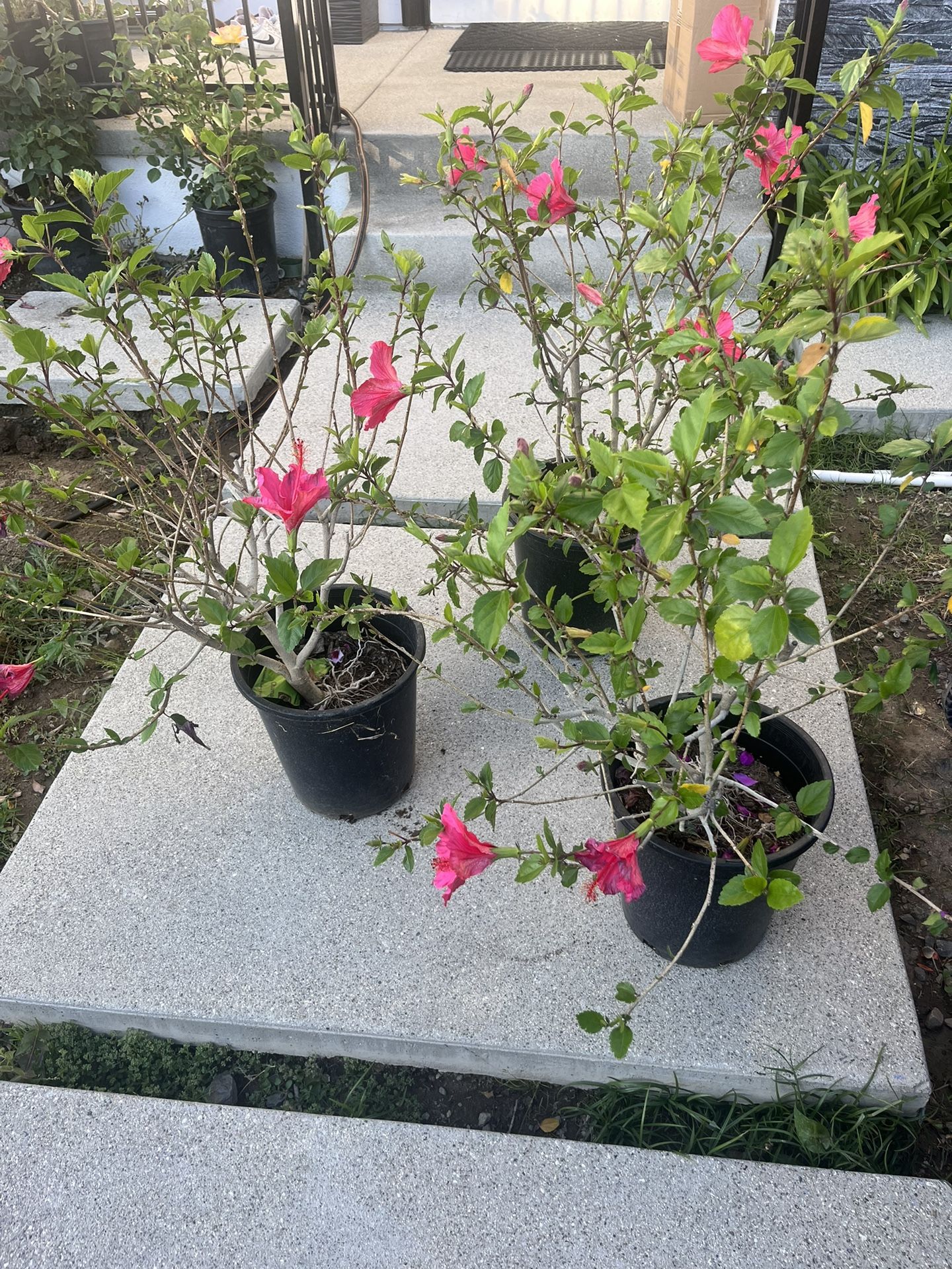 I have 3 hibiscus plants that I have been growing for a year now. Selling them each at 30$ but if you buy all 3 I can sell them at 75$. If you have any question feel free to reach out to me.