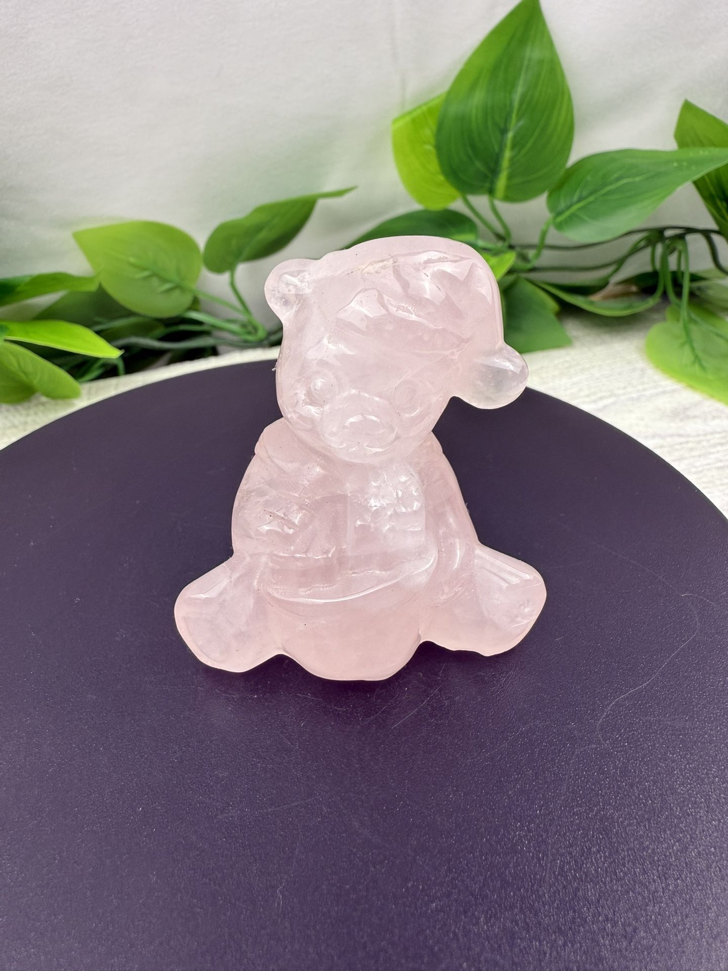 Dark rose quartz bear holding bag with presents carving very cute decoration for Christmas or holidays. Approx: 2.63” tall 1.96” wide and 94g/3.31oz Payment methods: Cash, Venmo, PayPal Local meet up 98092, no holds. message me for any requests Check out my other listings if you love crystals 💕 CRYSTALS CAN APPEAR LARGER IN PHOTOS THEN IN REAL LIFE. PLEASE REFER TO THE DIMENSIONS LISTED‼️