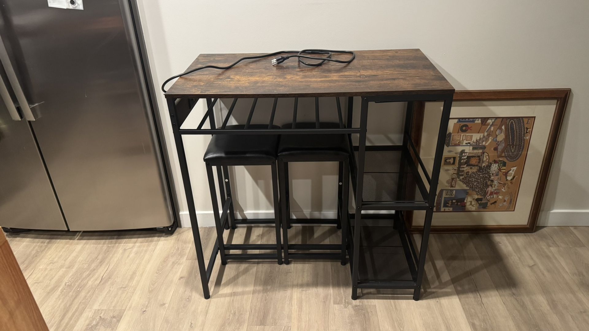 Selling our Bar table. Great condition. It has 2 built in AC outlets and 2 USB outlets. Looking to let it go for around $180 Willing to drop off if locale