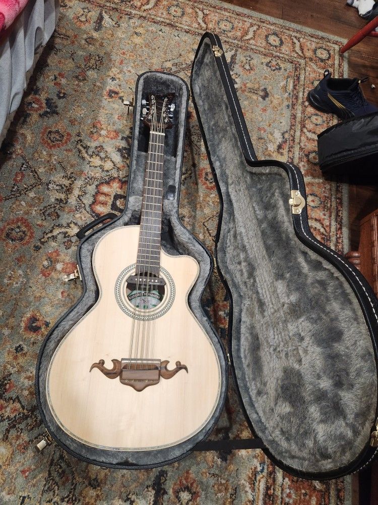 Brand new. Pickup installed. Includes TKL hard case. Low action, nice sound.