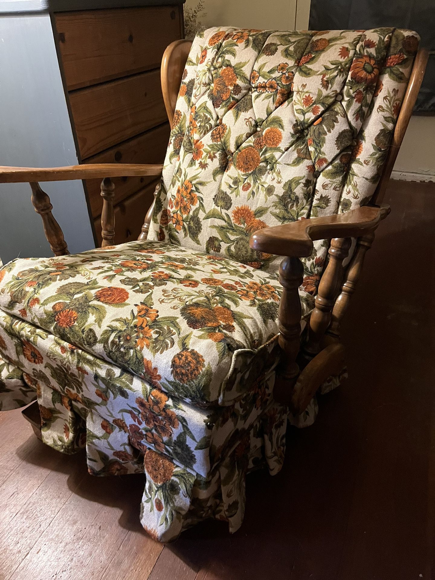 Cute floral rocking chair. Clackamas Porch pick up. 15$ obo.