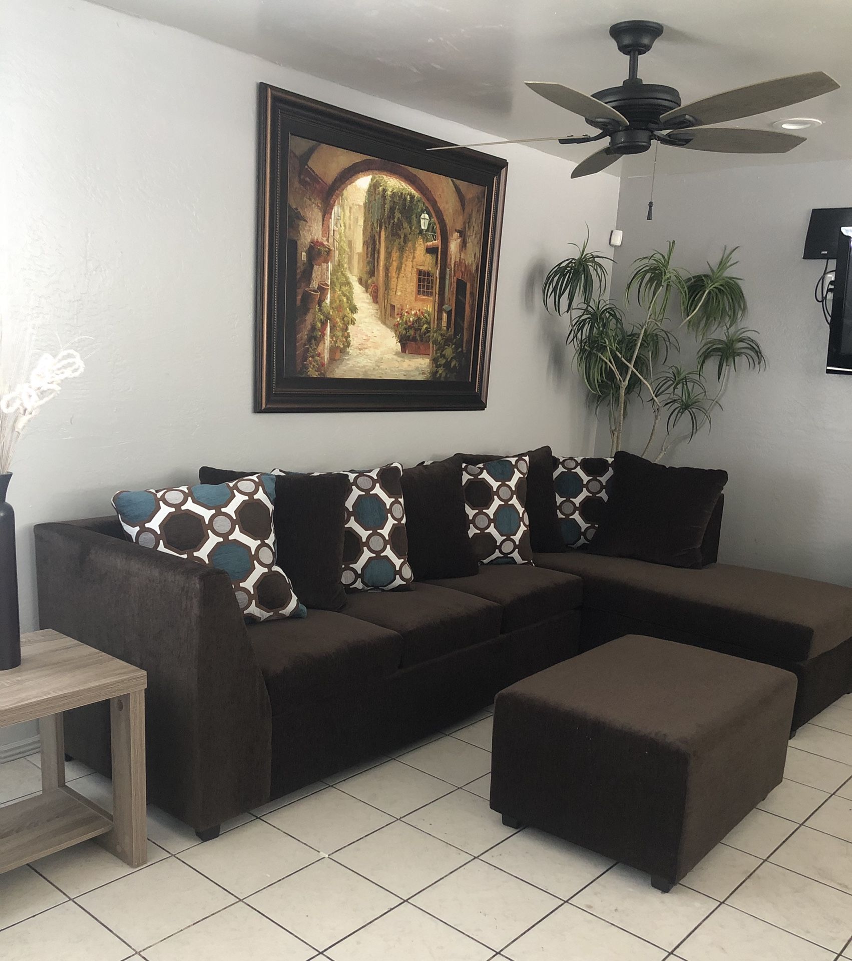 Brown Sectional With Designed Pillows ¡¡NEW IN STOCK!!