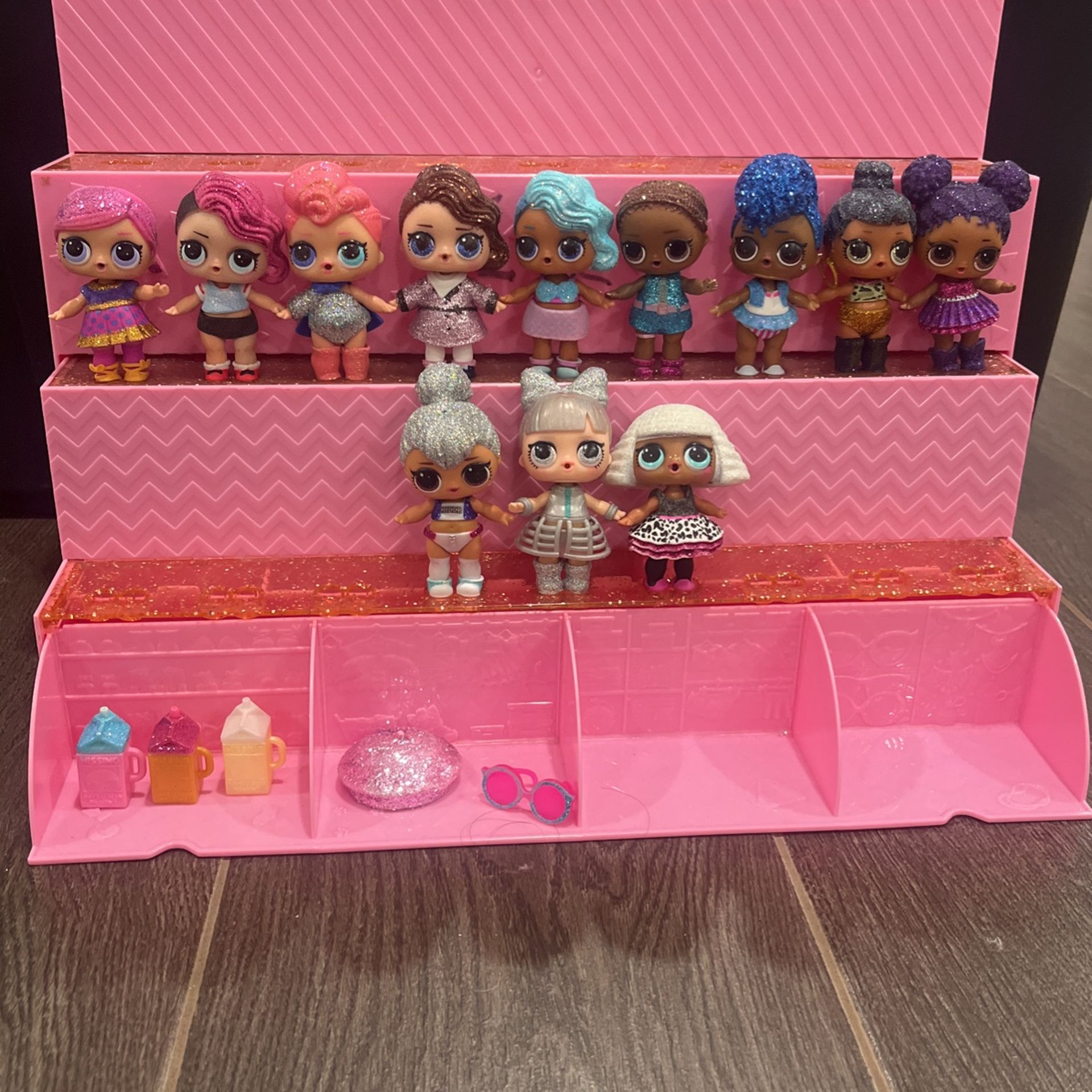 A great way to organize your LOL dolls so they are not all over the place . It is also a good way to hold the LOL dolls accessories (in the front and back)