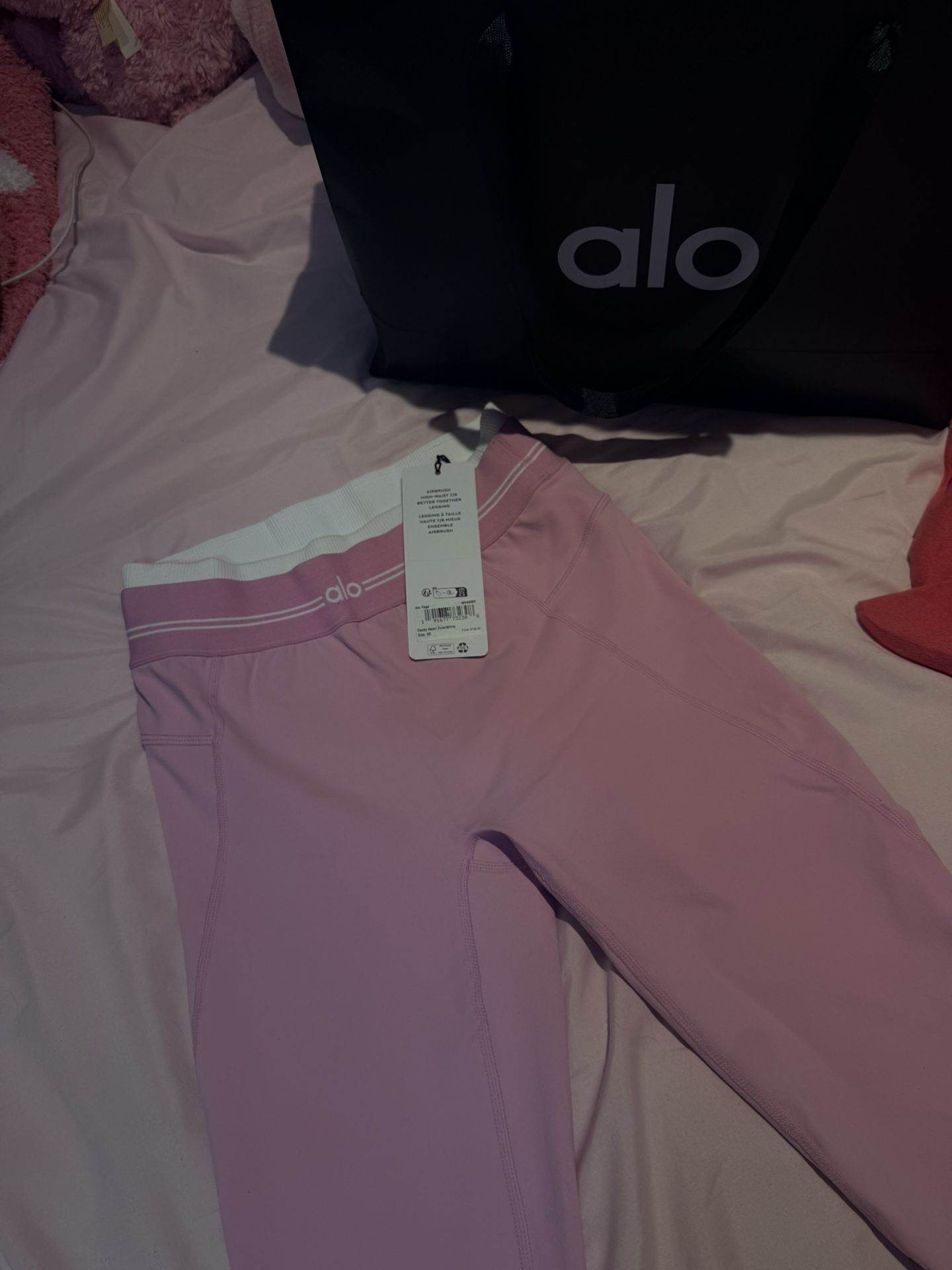 alo leggings candy heart pink/white