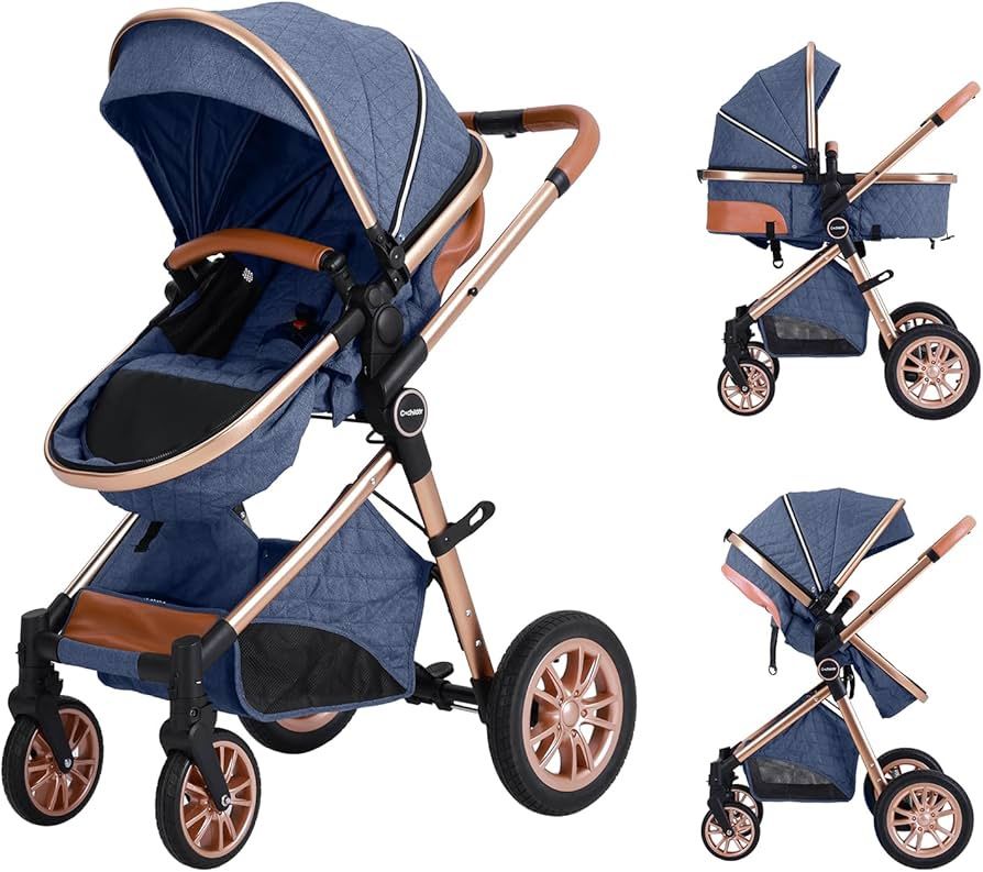 DuraFlex 2-in-1 Baby Stroller, Foldable Travel Stroller for Newborn to Toddler, Convertible Stroller with All-Terrain Wheels and UPF 50+ Canopy, Blue