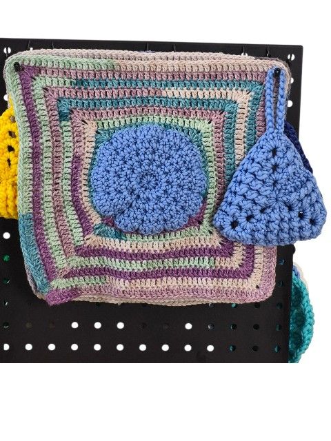 Handmade Crochet Facial Exfoliator w/Exfoliating Towel $25 Made with cotton and scrubby yarn. Towel can be folded to use as back scrubber (diagonal shape). Triangle has holes to put your finger through to have control of the scrubber. Hang to dry.