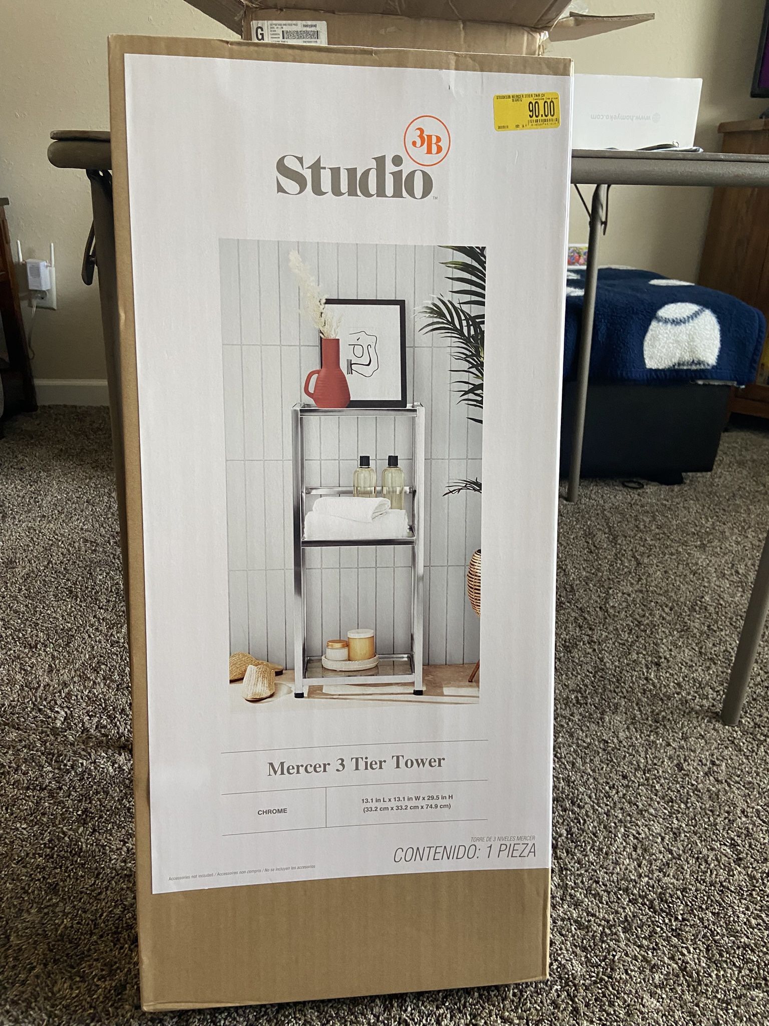 31.1” L x 13.1” W x 29.5”H Chrome with glass shelves