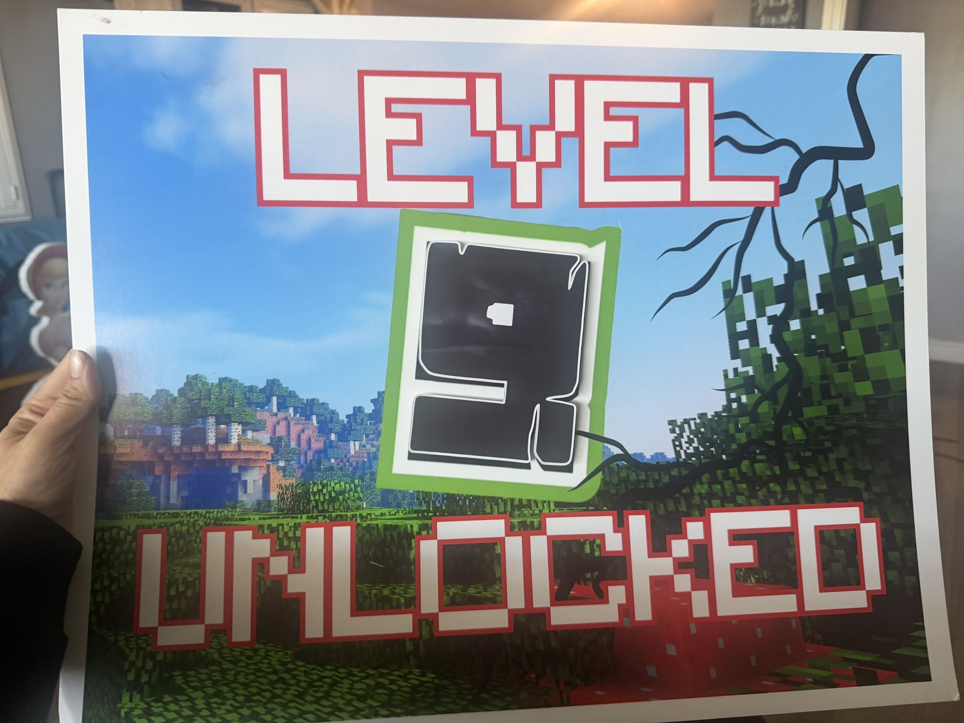 I created and printed this for my son's ninth birthday.. would be good for a Minecraft or gaming party