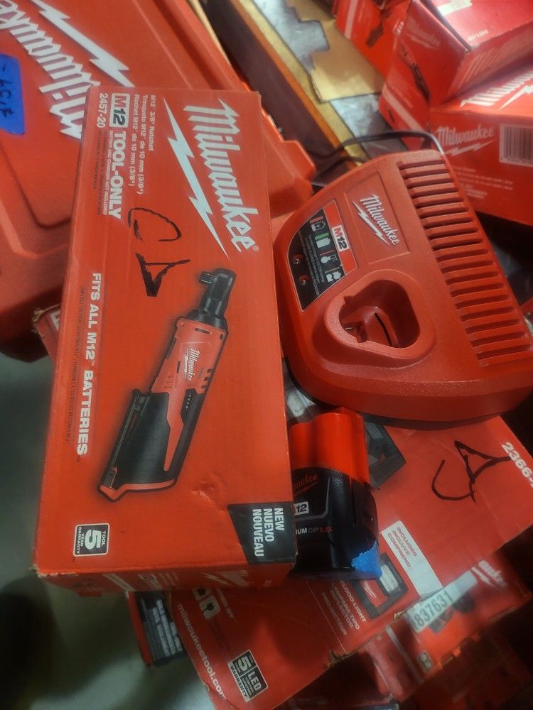 MILWAUKEE M12 CORDLESS 3/8 RATCHET KIT BATTERY AND CHARGER NEW