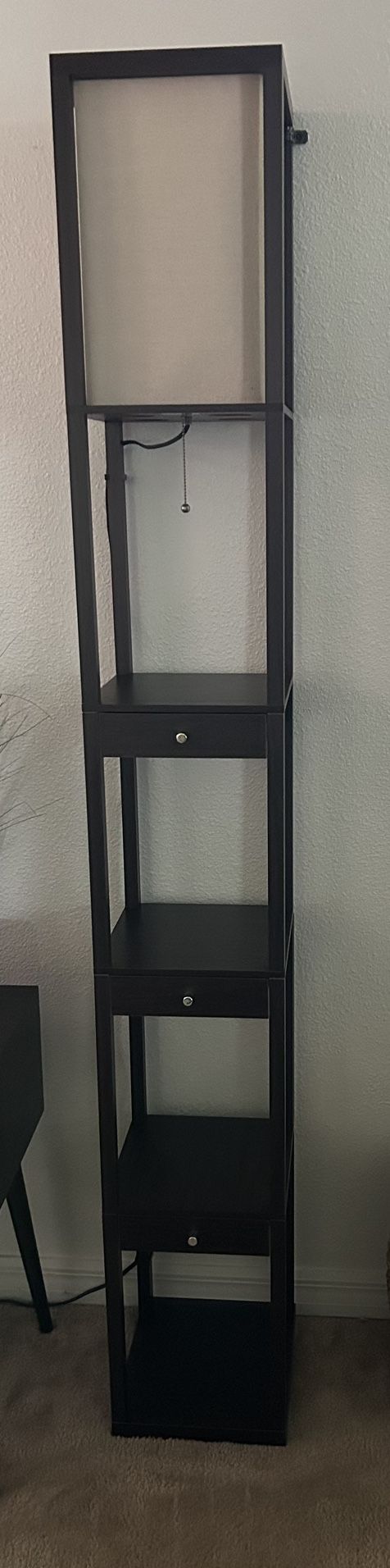 Brown 4 tier floor lamp with shelves and 3 drawers for storing things. In perfect condition.