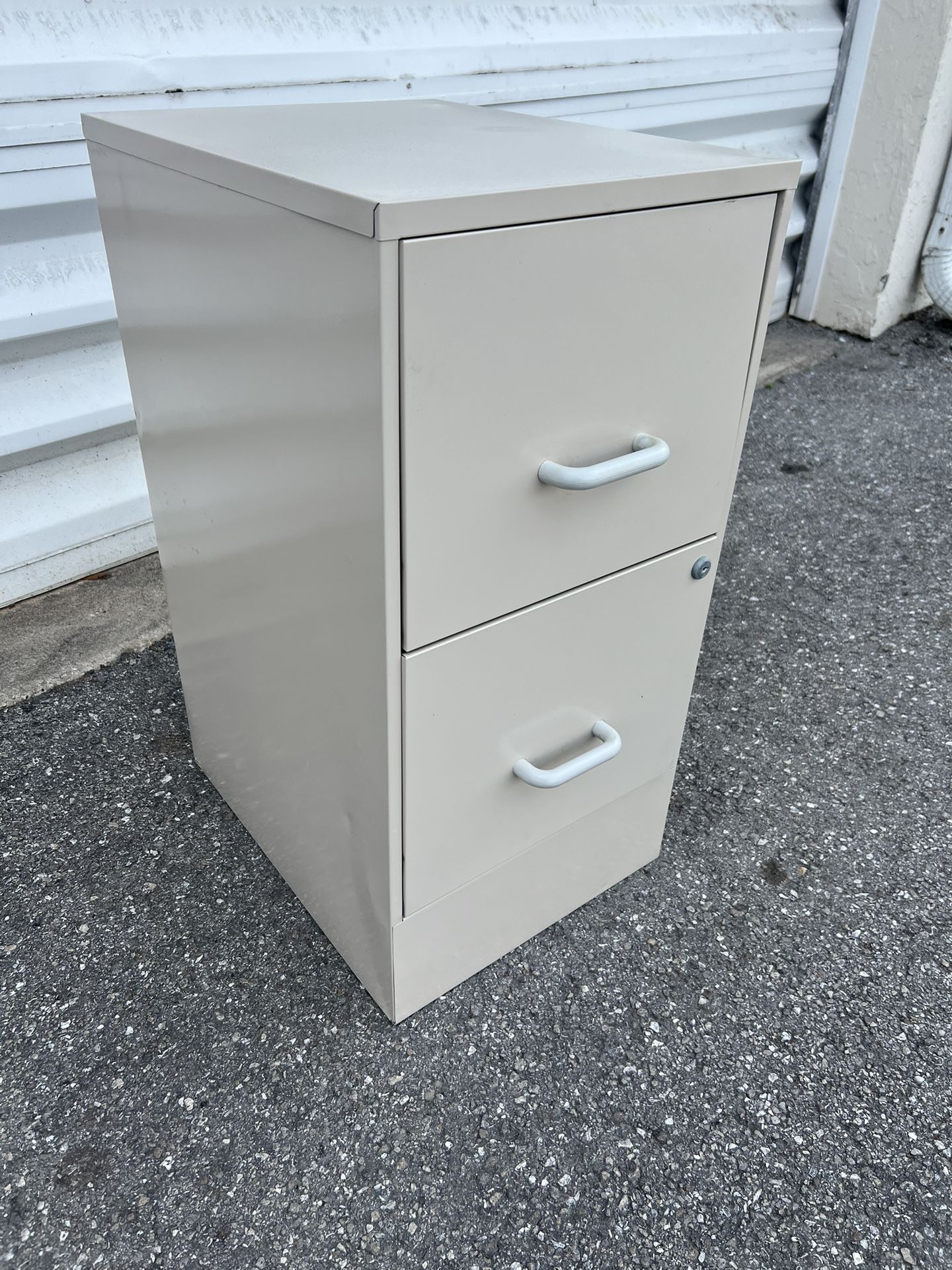 Metal Beige Two Drawer Office File Filing Cabinet! No key but unlocked. 18x14.5x28in