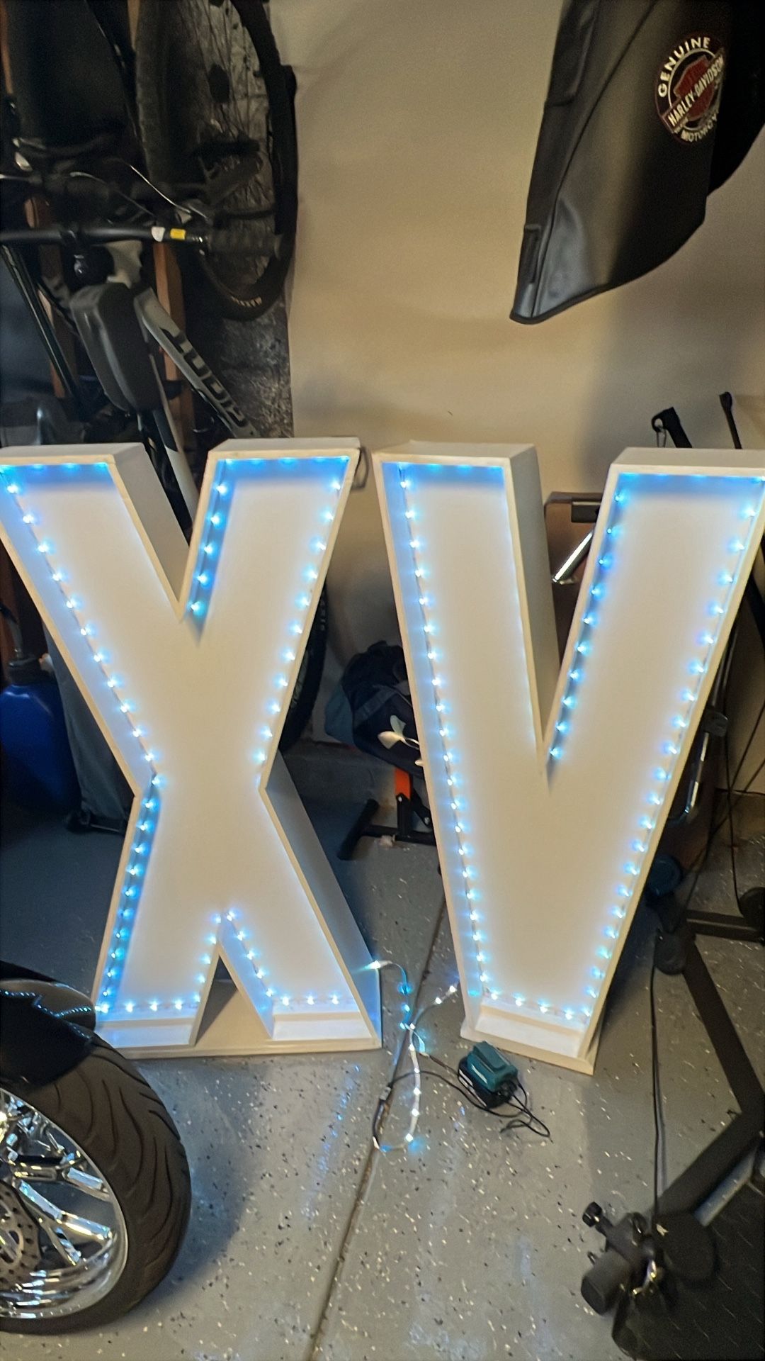 quinceanera xv 15 wood led lights Roman numerals decor Painted particle board 50” x 25” with USB CONNECTOR Forsale 180$ not for rent