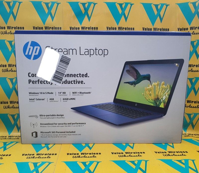 Hp laptop celeron 4gb 64gb mmc cam bt WiFi 14screen window 10
