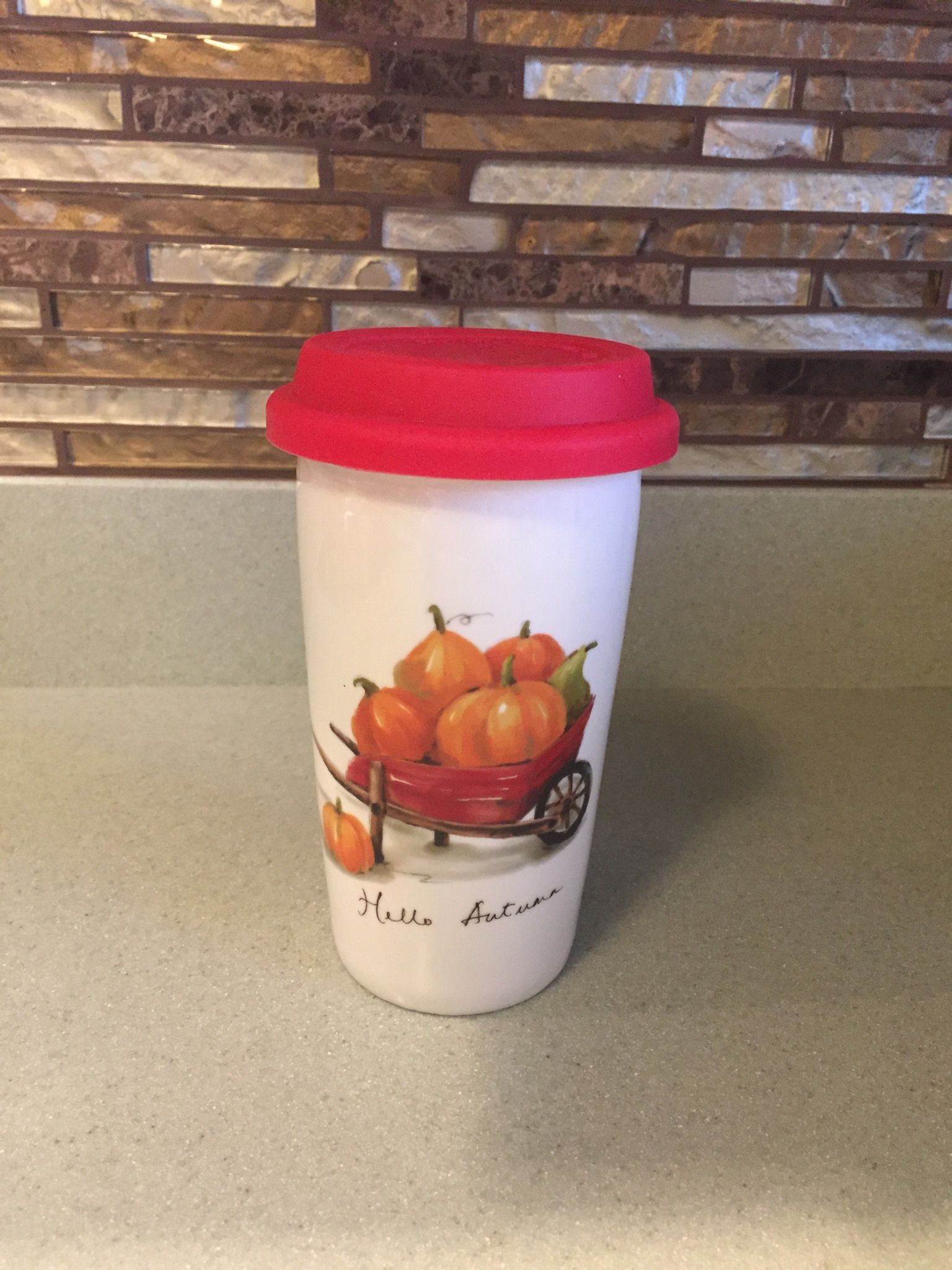 BRAND NEW HELLO AUTUMN PUMPKIN TRAVEL MUG 12 OZ
