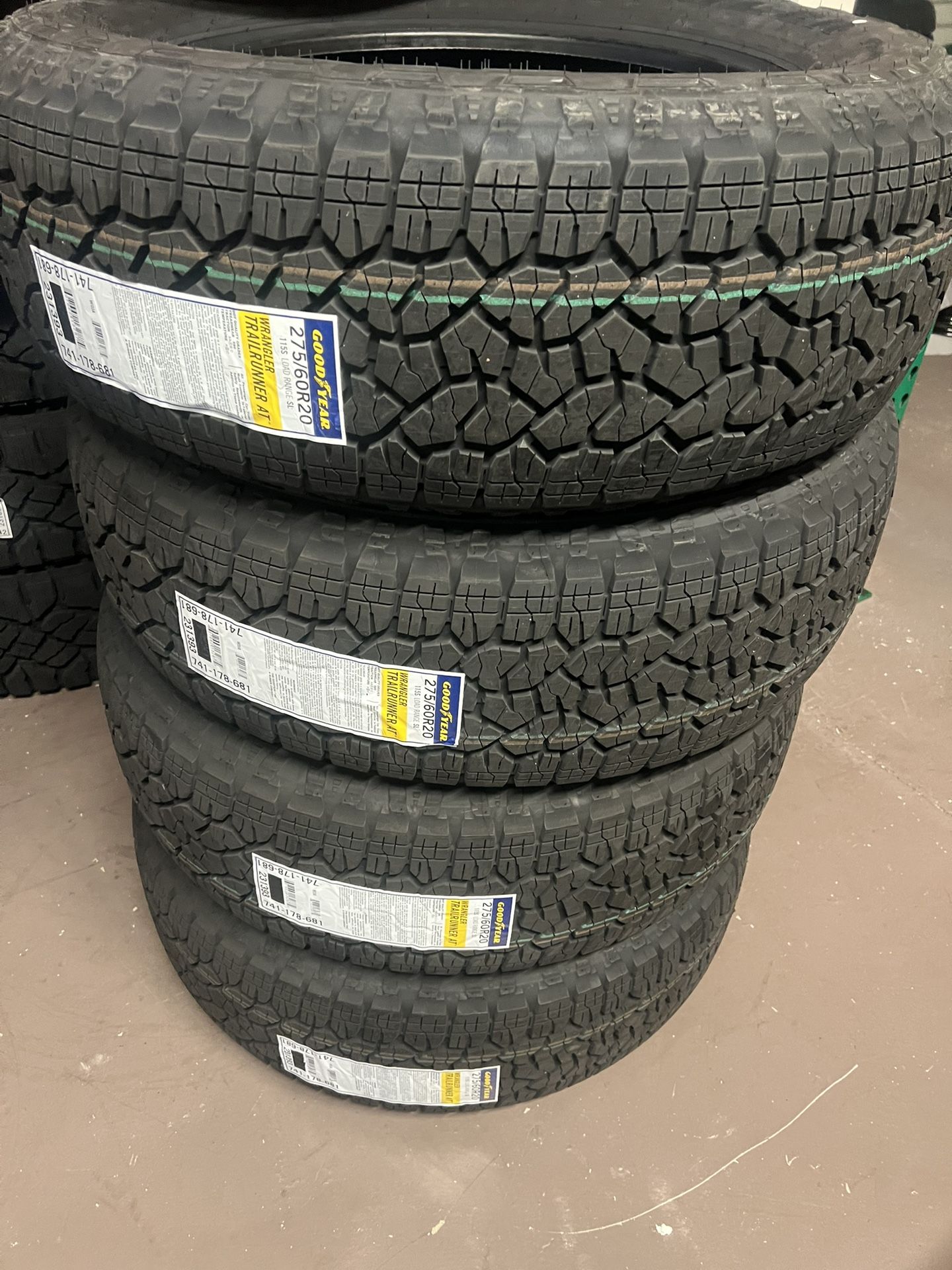 Especial de llantas nuevas 275/60/20 llantas nuevas Goodyear wrangler trailrunner todo terreno $799 instaladas y balanceadas Gracias 275/60R20 new Goodyear wrangler trail runner All terrain tires $799 mounted and balance Thank you 275/60/20 275/60r20 275-60-20 275-60r20 275 60 20 275 60r20 Dodge ram tires Silverado tires Chevy tires GMC tires Z71 tires