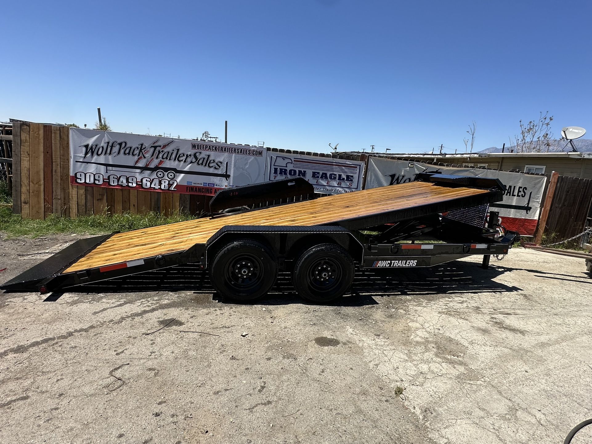 20x7 car hauler 8 lug 14k gvwr 7,000 lb axels Brakes on both axels Tool box Winch receiver on top of bumper Diamond dplated fenders Removable driver fender for clearance 8 welded d rings Tendem brakes Optional Spare tire optional $170 Optional winch $600 installed