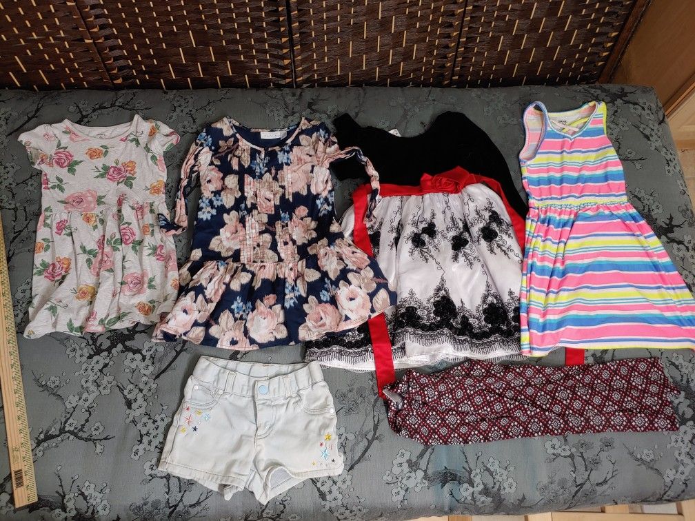 What you see is what you get so check pics carefully GIRLS 4T / 5t clothing LOT 4 dresses 4t 2 bottoms 5t Lightly used to never used My daughter has out grown these items and there in great condition so passing along for a fraction of the price when NEW. NO tears or rips no serious marks to zero marks