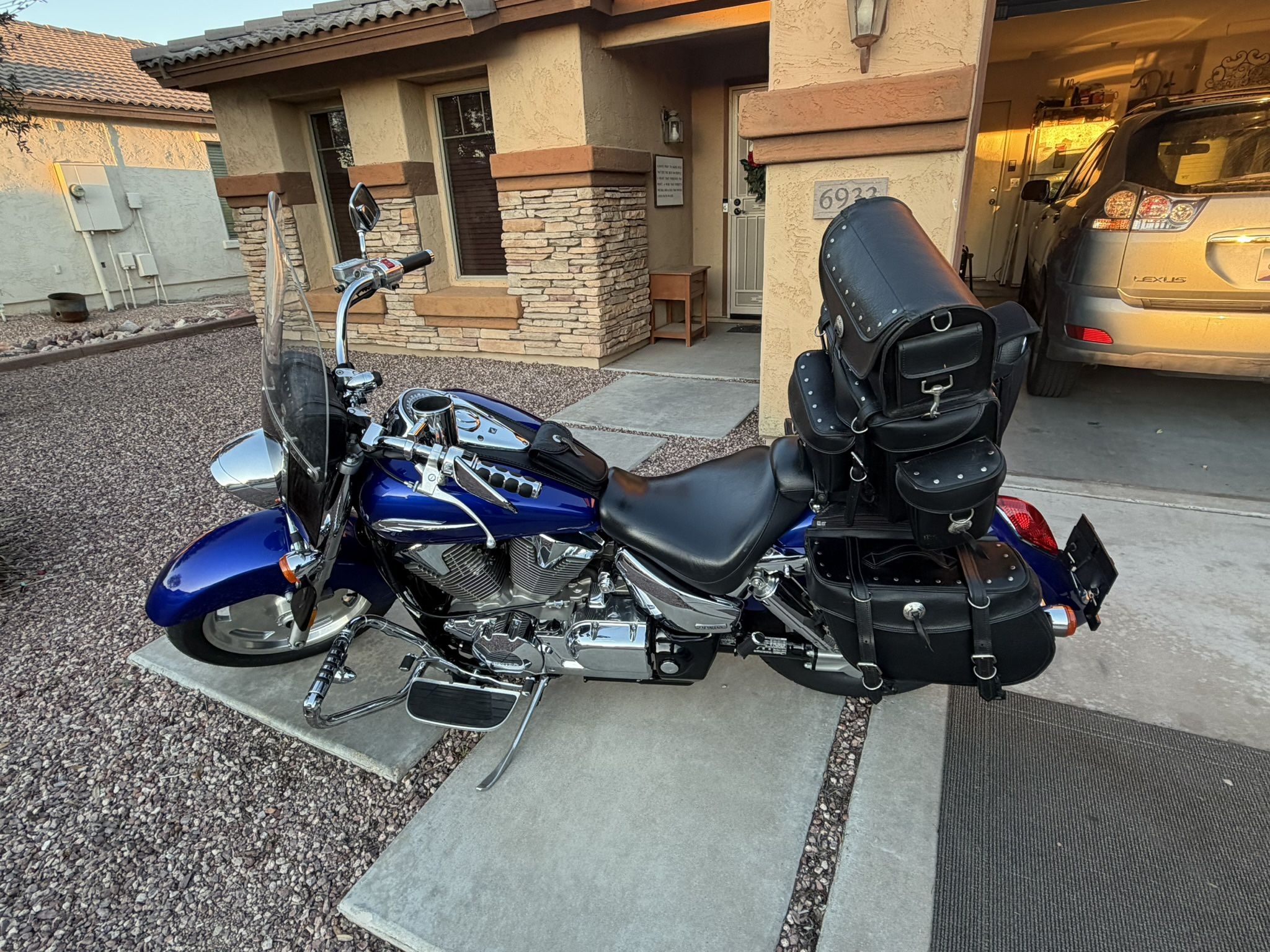 One owner beautiful bike with many accessories included. Not even 8K miles on it. New tires; new battery, tuned and ready to be ridden! This is an amazing price for this well-maintained beauty. Great sounding straight pipes. Some accessories include saddle bags, support bar, engine guards, fog lights, cigarette lighter for charging devices, and a host of others. Serious inquiries only.