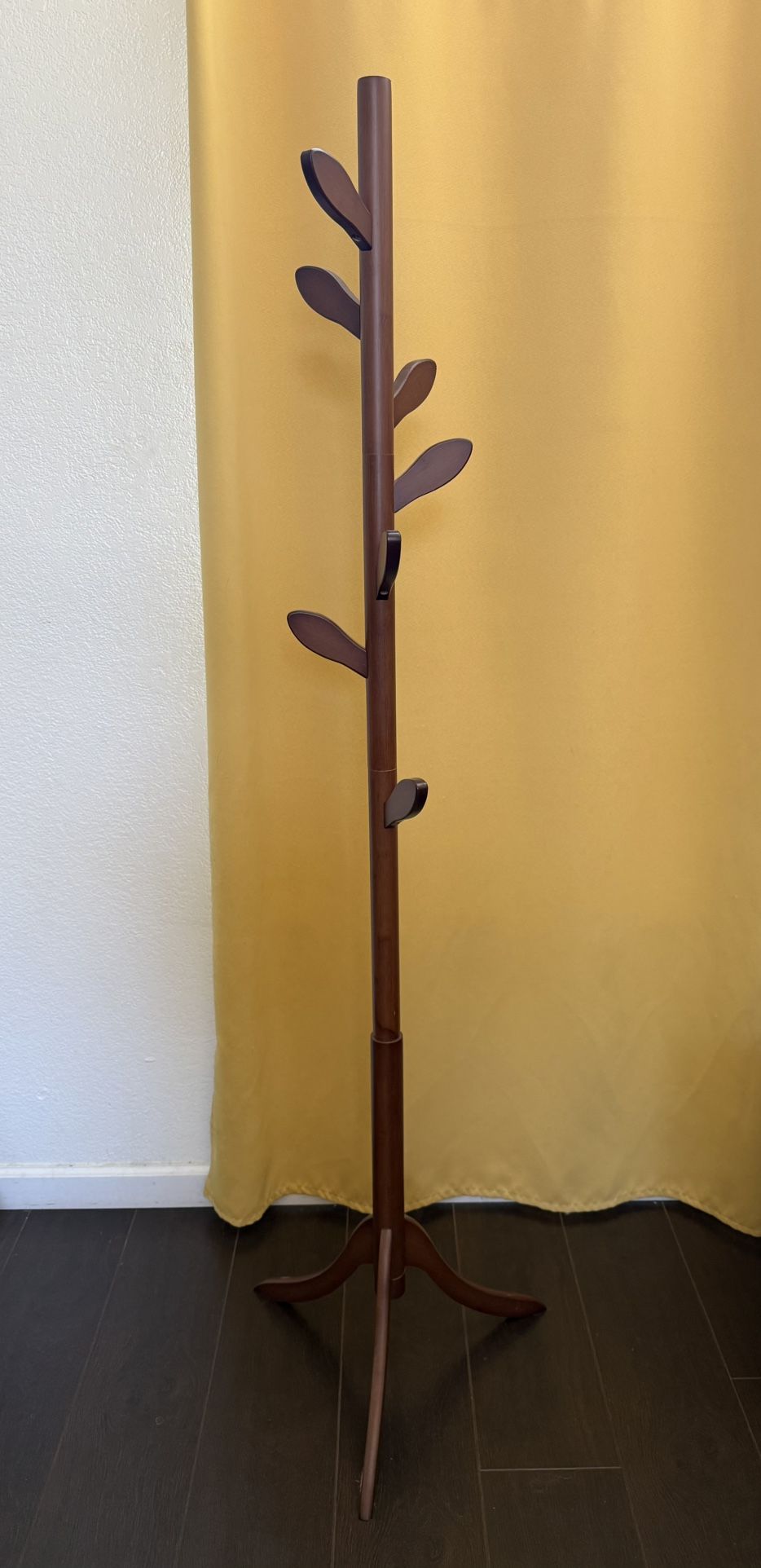 Wooden coat rack with leaf/tree-shaped hooks. Barely used. Like new. 8 hooks 68 1/2” tall