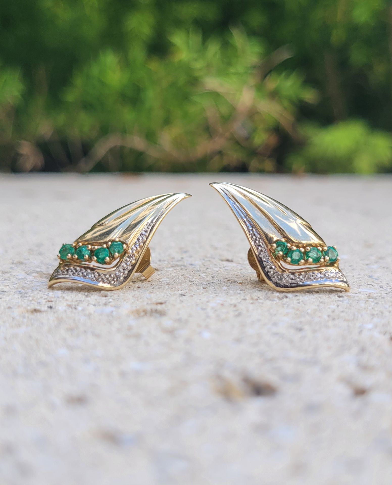 14K Gold Emerald Diamond Vintage Earrings (Jewelry Box Included)