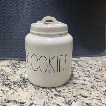 Rae Dunn Cookie Jar COOKIES White lid has a crack must pick up