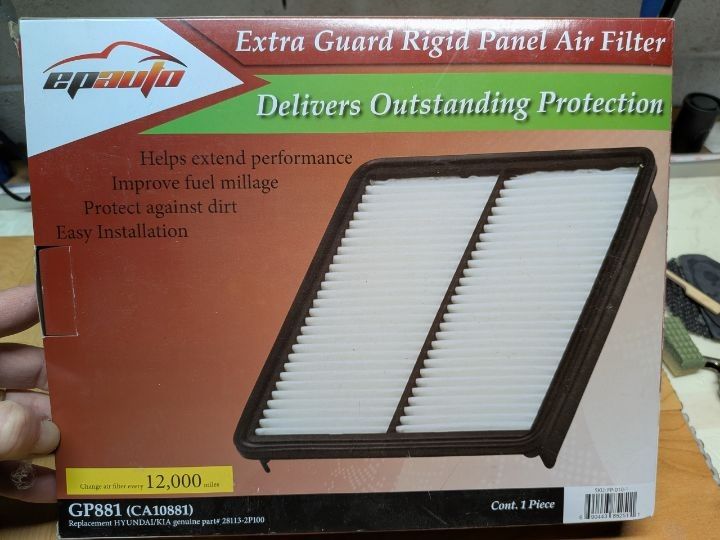 Engine Air Filter Fram CA10881 New in box. Well made, well known brand. The CA10881 is designed to fit various Hyundai and Kia models, including Hyundai Azera, Santa Fe, Sonata, and Kia Optima, Sorento, and Cadenza. Your engine needs air to run correctly. This is a small price to replace a dirty, blocked filter and easy to do. Dealers will charge MUCH more