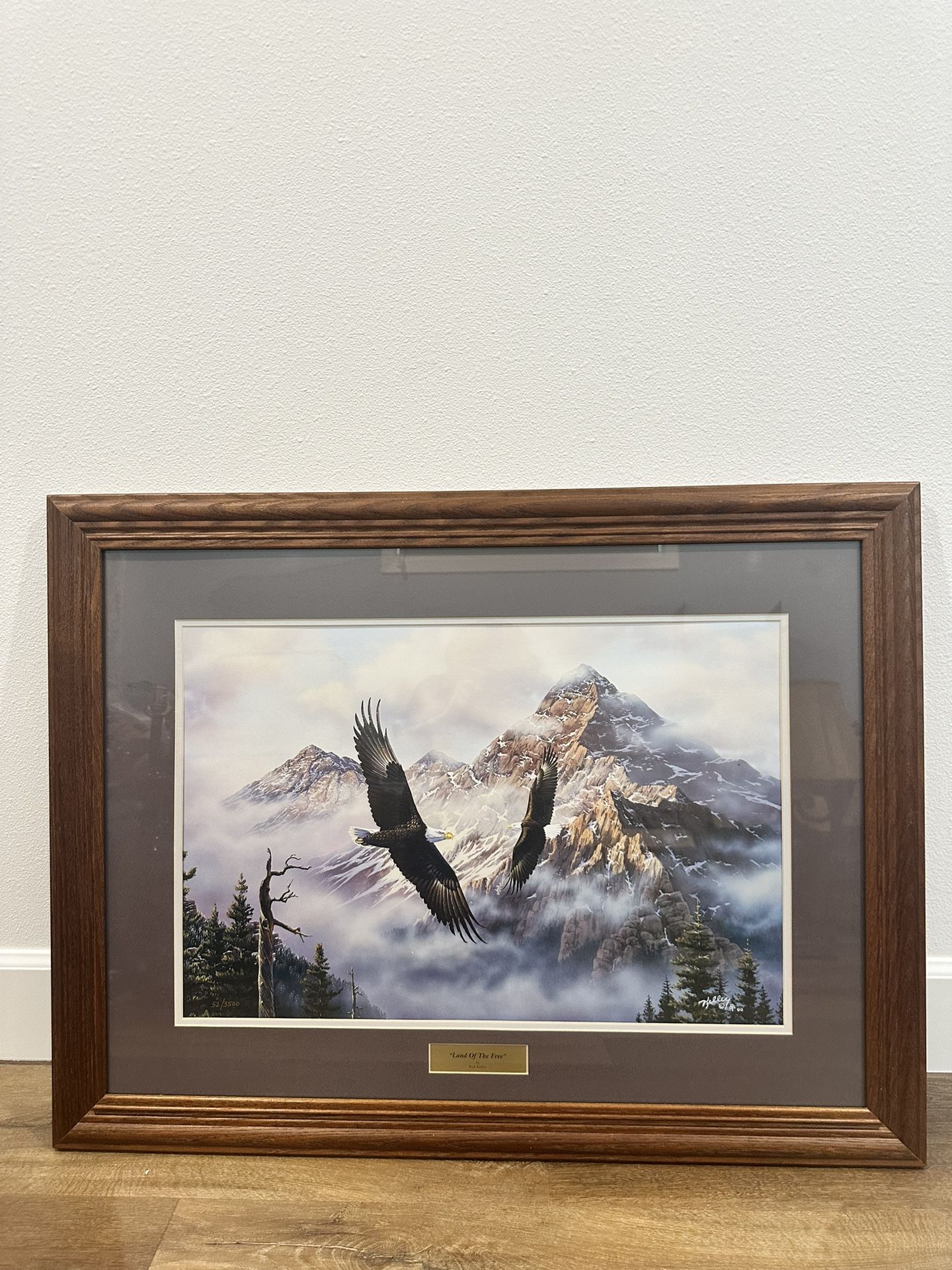 Beautiful wood framed soaring eagle picture by Rick Kelley “Land of Freedom”. It’s in perfect shape, 34” x 26”. Please let me know if you have any questions. Downsizing and don’t have room for all my framed pictures anymore.