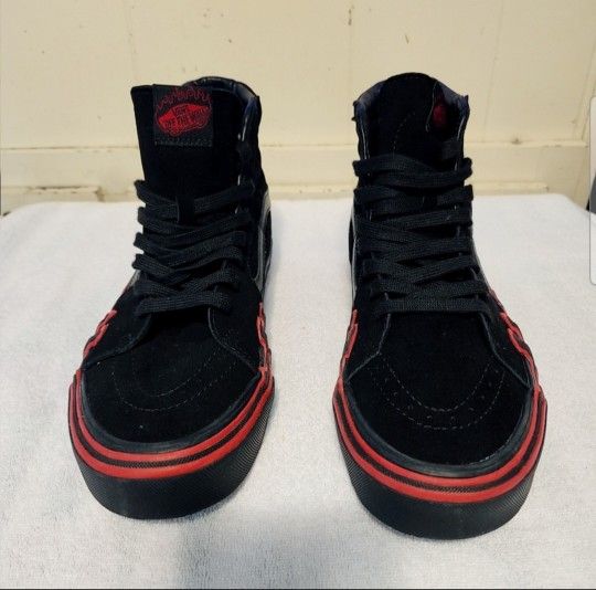 Vans Sk8-Hi Flame shoe in a black and red colorway with a suede upper. New no box
