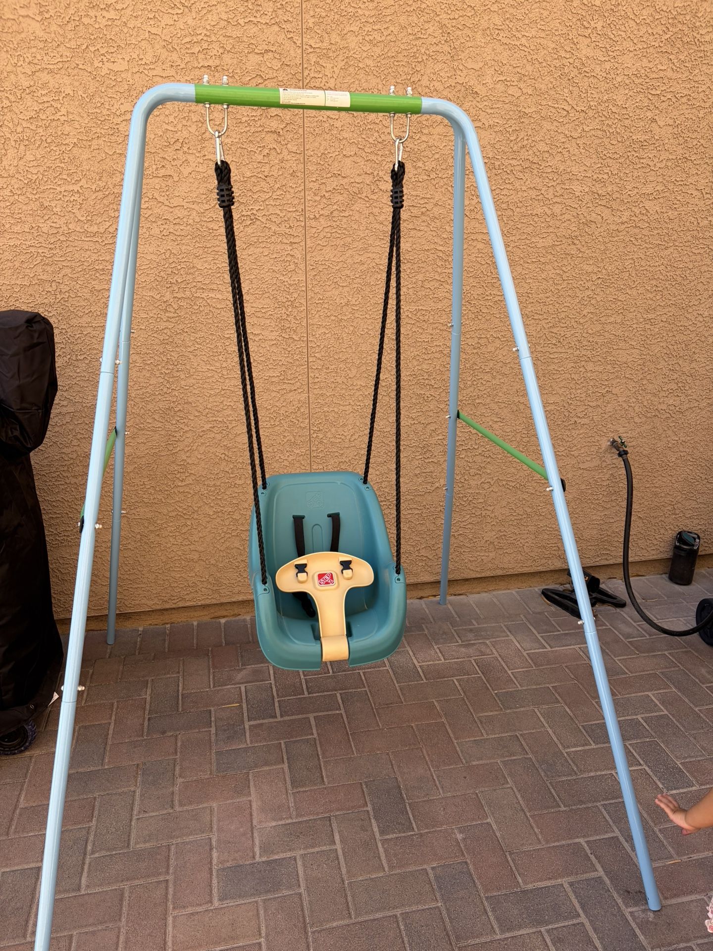 71” tall by 70” wide. 9months to 3 year old step 2 swing.
