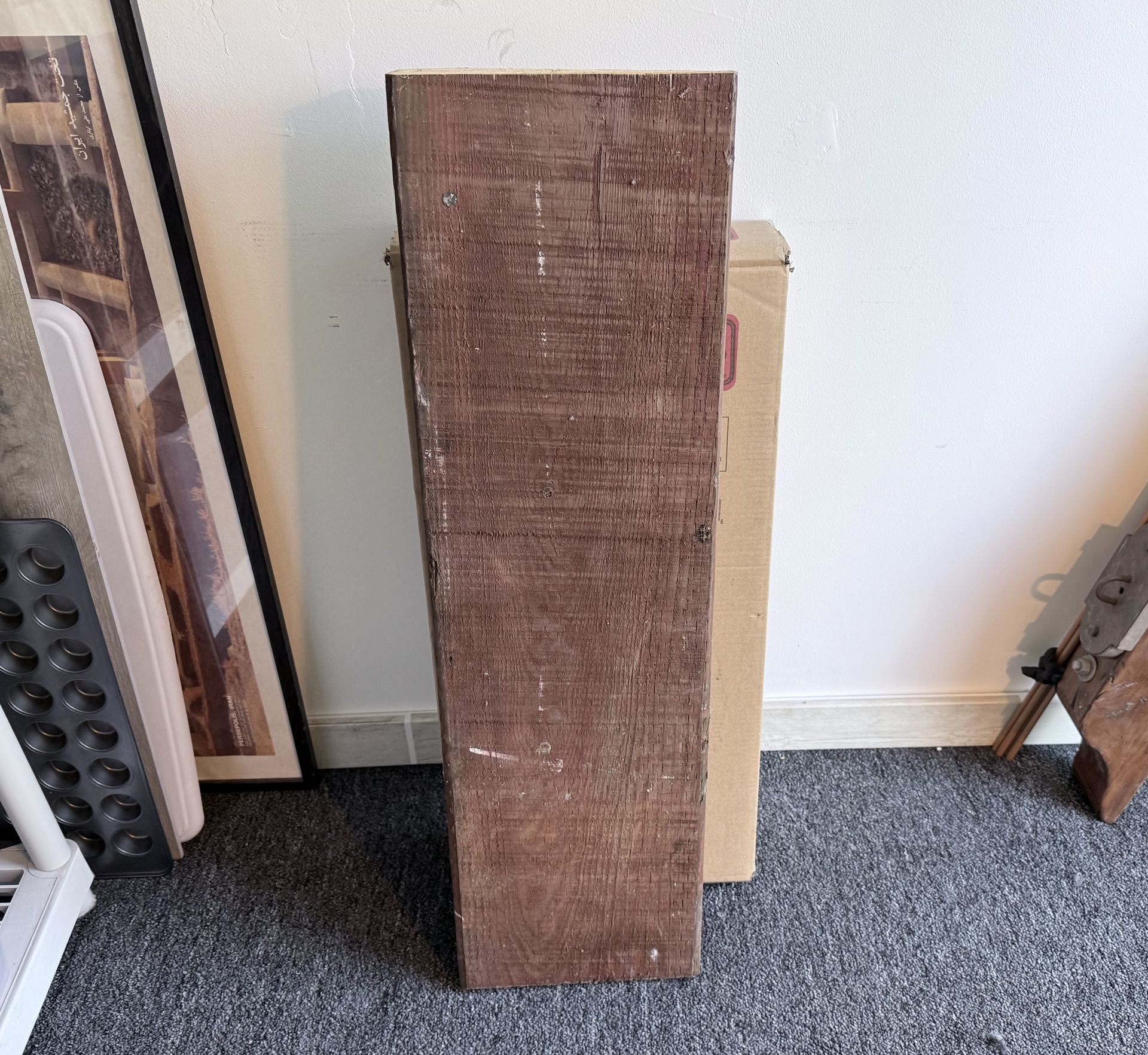 Solid Redwood Piece of Lumber Wood Left over from a project. Garage stored and ready to be put to good use. Measurements are 11” x 3.5” x 39” Price is firm, pick up only.