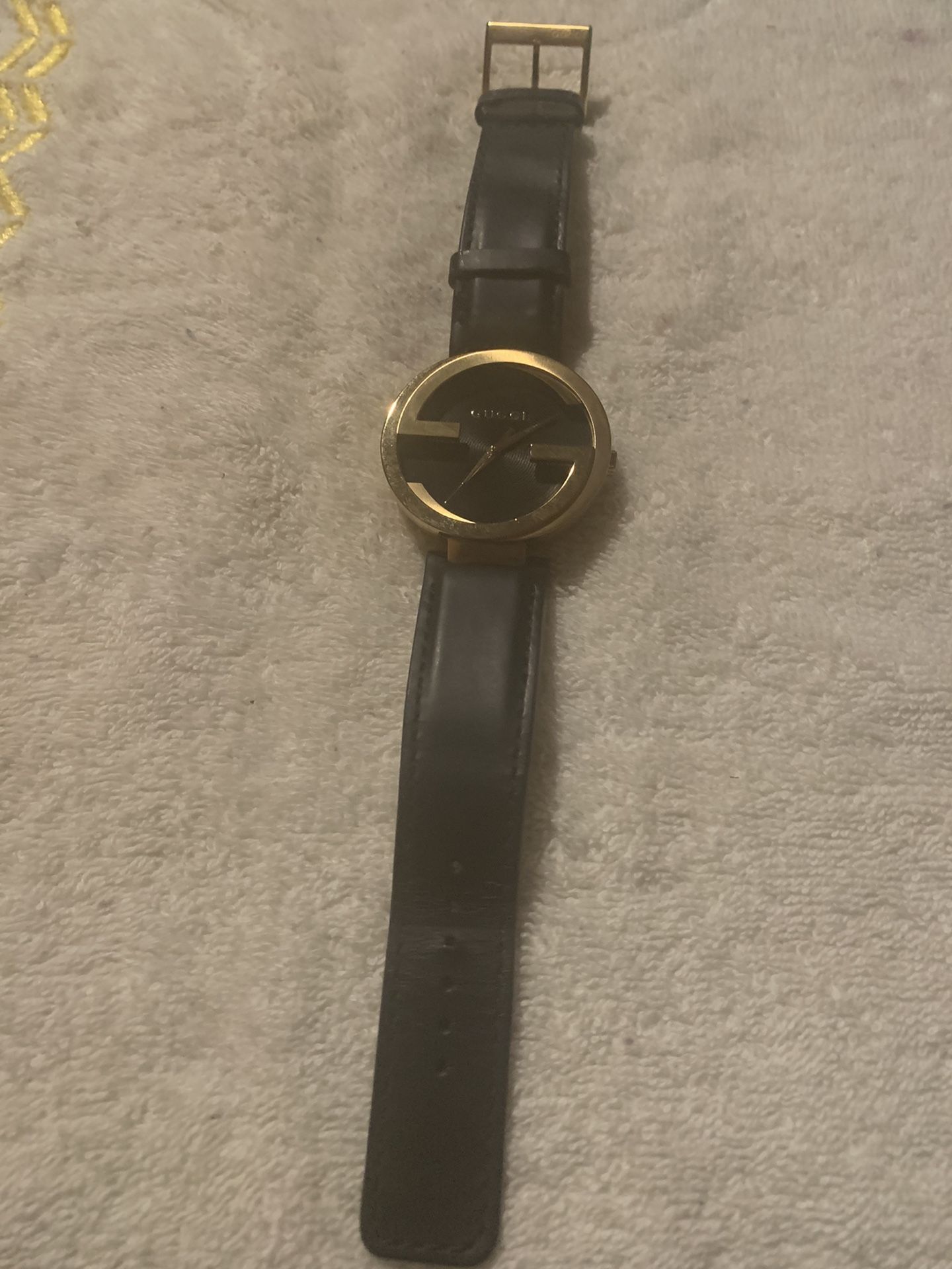 Round watch featuring textured numberless dial with gold-tone logo and hands 37 mm gold-tone case with antireflective-sapphire dial window Swiss quartz movement with analog display Leather calfskin band with buckle closure Water resistant to 50 meters $600 OBO πππ NO PERSONAL CHECKS πππ SERIOUS INQUIRIES ONLY!!!