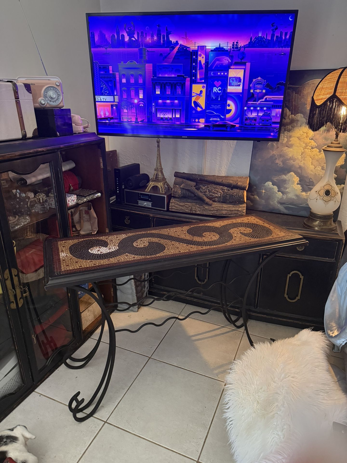 console iron & mosaic top