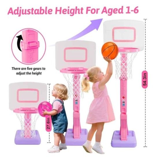 Toddler Girls Mini Basketball Hoop Indoor Pink Adjustable Basketball Goal with Ball Pump for Outdoor Poolside Toys for Backyard Game Outside Basketball Toy for Kids Age 3-5 6 7 4-8 Birthday Gifts
