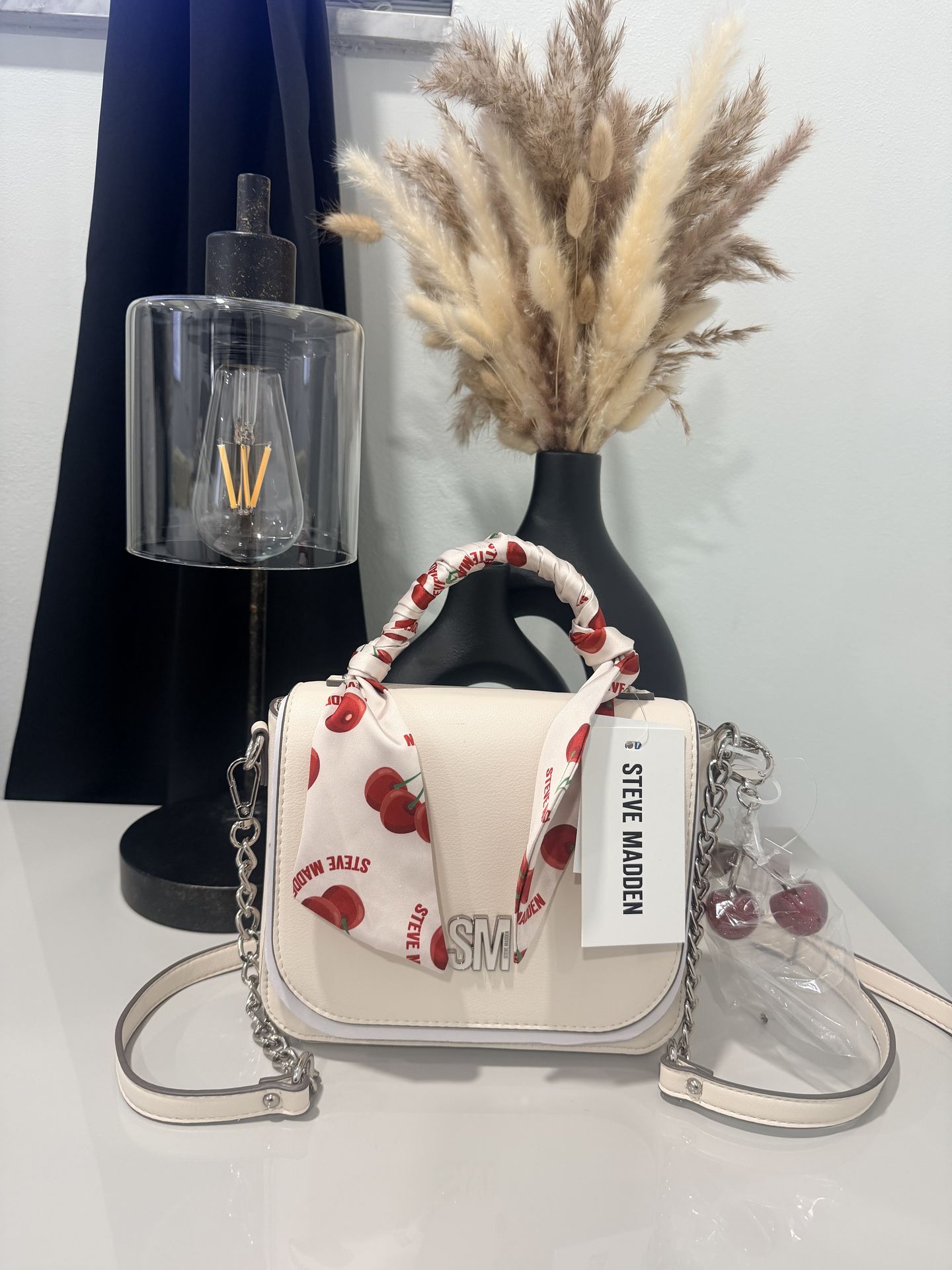 New Steve Madden handbag with decorative scarf detail. Stylish and trendy design. Great size for everyday use. Brand new with tags.